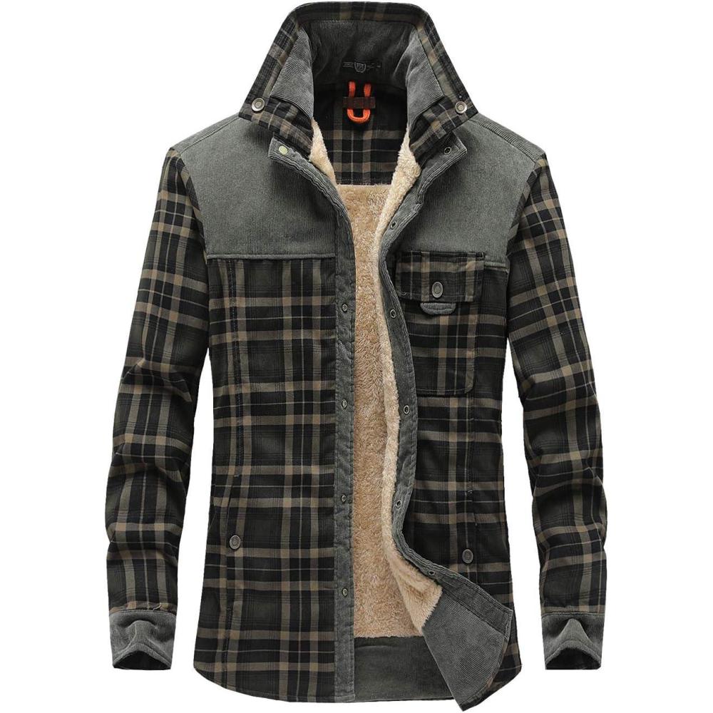 chouyatou Men's Warm Long Sleeve Fleece Lined Spliced Plaid Button Down Shirt