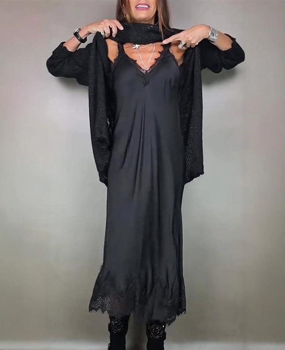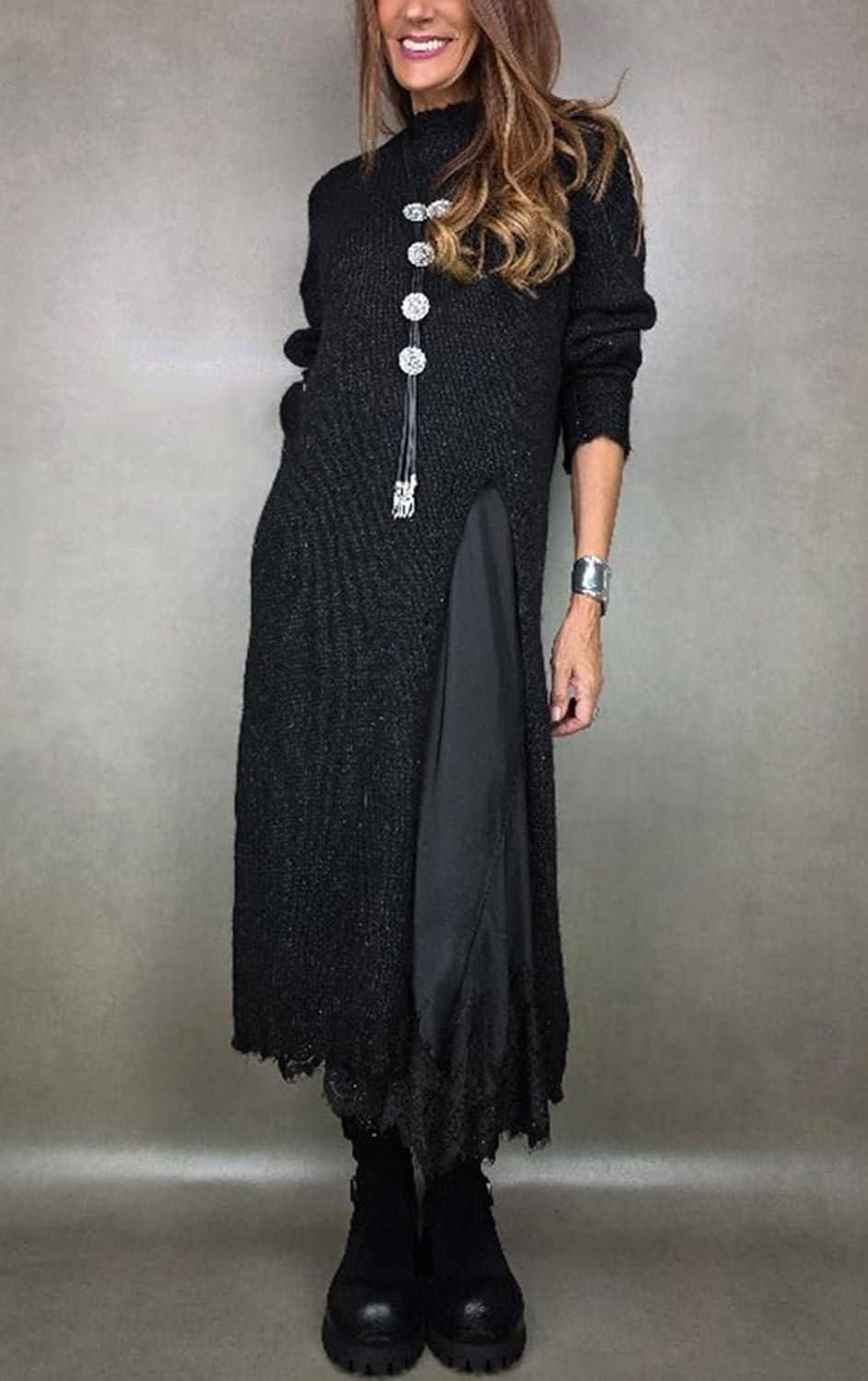 Be the first to review “chouyatou Women 2025 Fall Twofer Sweater Dress with Lace Trim Slip Dress 2 Piece Sweater Sets Winter Outfits(Black)” Cancel reply