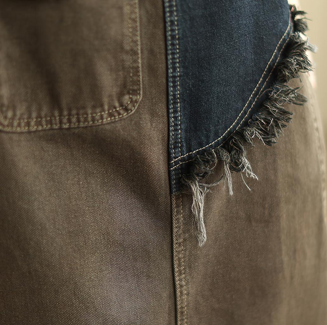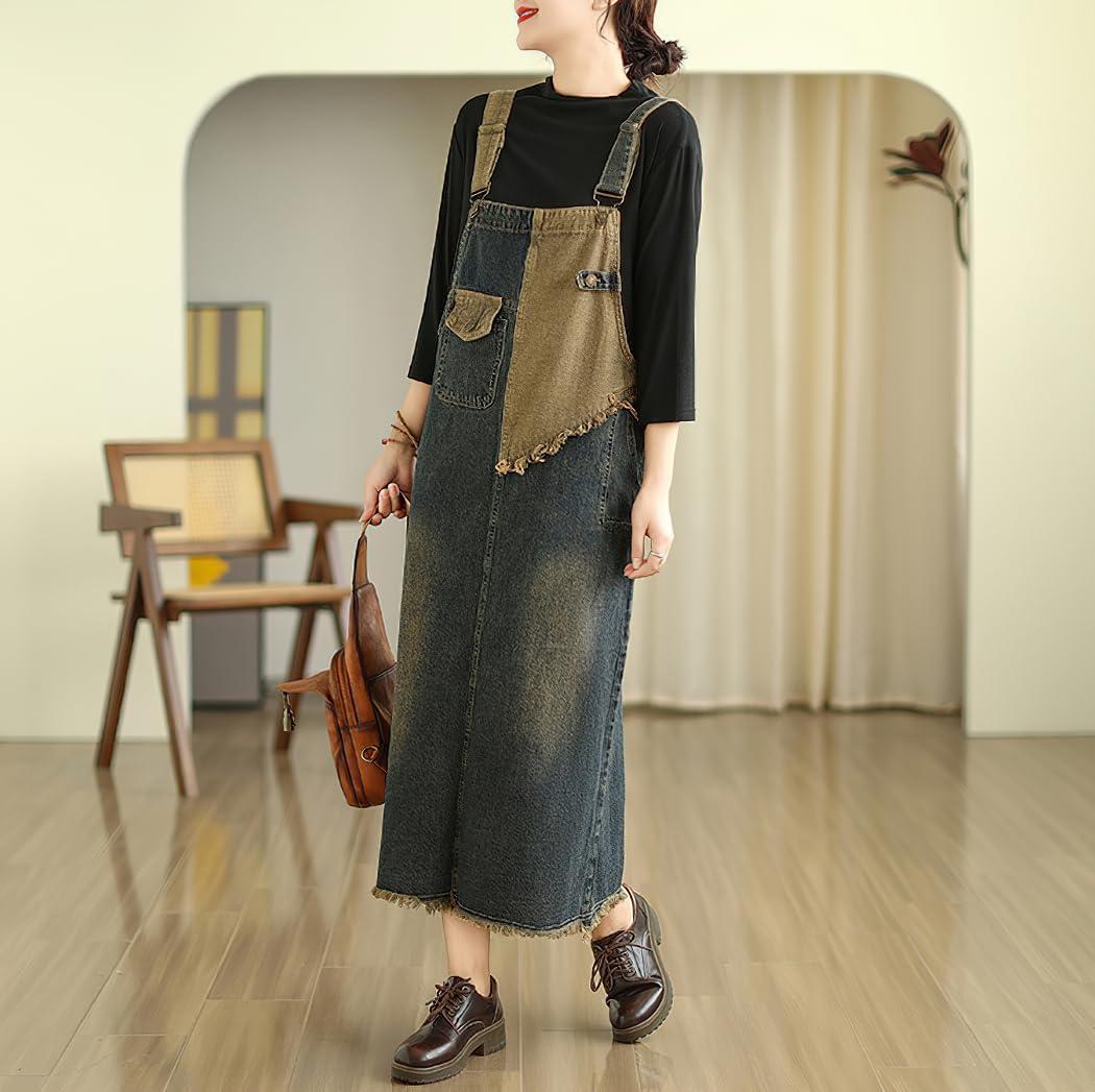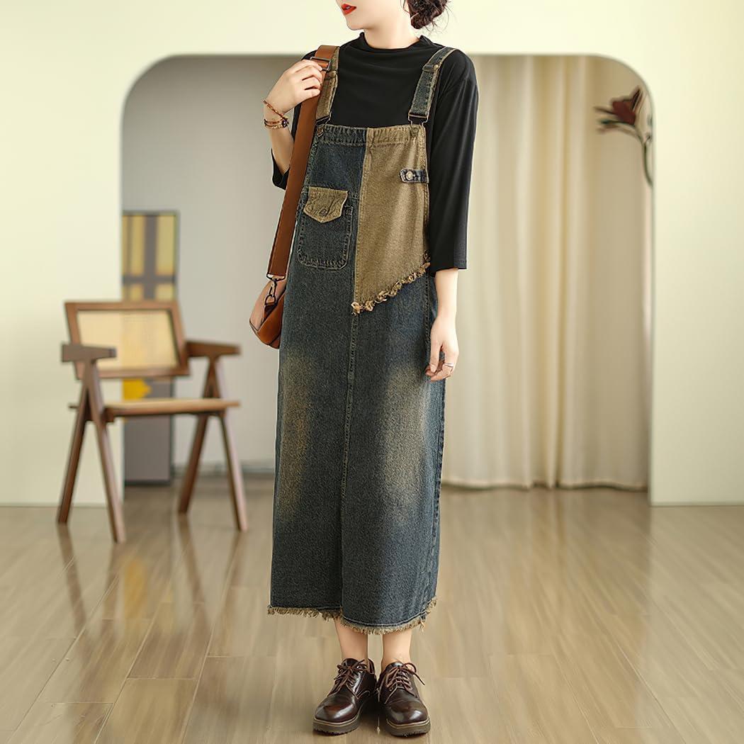 imagechouyatou Women Baggy Adjustable Strap Distressed Denim Overall Dress Splicing Pinafore Jean Tank DressBrown