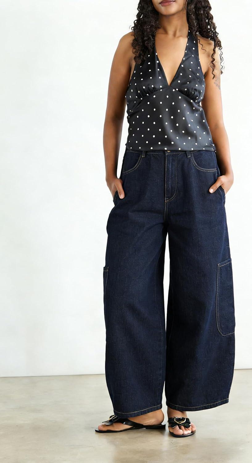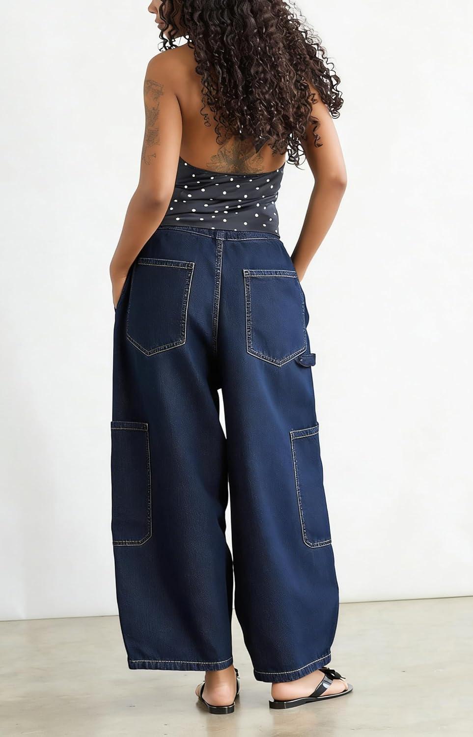 Be the first to review “CHOUYATOU Women Casual Boyfriend Baggy Wide Leg Jeans Elastic Waist Y2K Barrel Jeans Denim Palazzo Pants(Dark Blue)” Cancel reply
