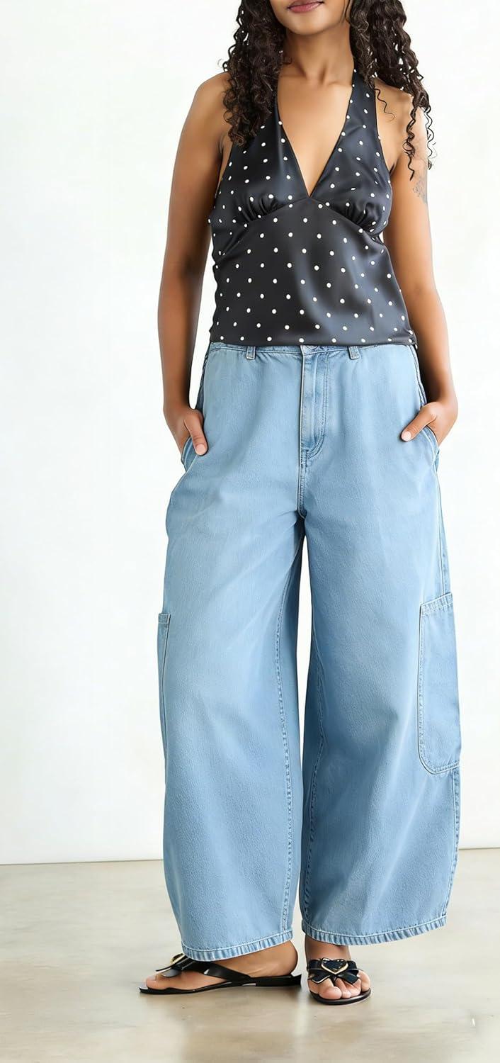 Be the first to review “CHOUYATOU Women Casual Boyfriend Baggy Wide Leg Jeans Elastic Waist Y2K Barrel Jeans Denim Palazzo Pants(Light Blue)” Cancel reply