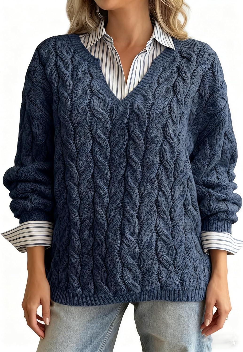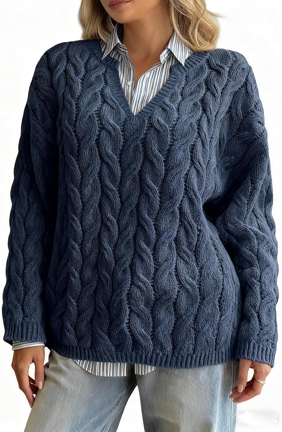 Be the first to review “chouyatou Women Fall Notch V-Neck Cable Knit Pullover Sweater Loose Winter Chunky Cozy Sweater Jumper Top(Dark Blue)” Cancel reply