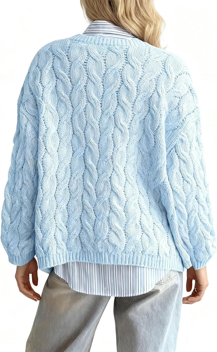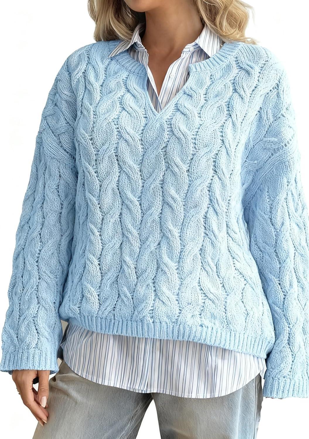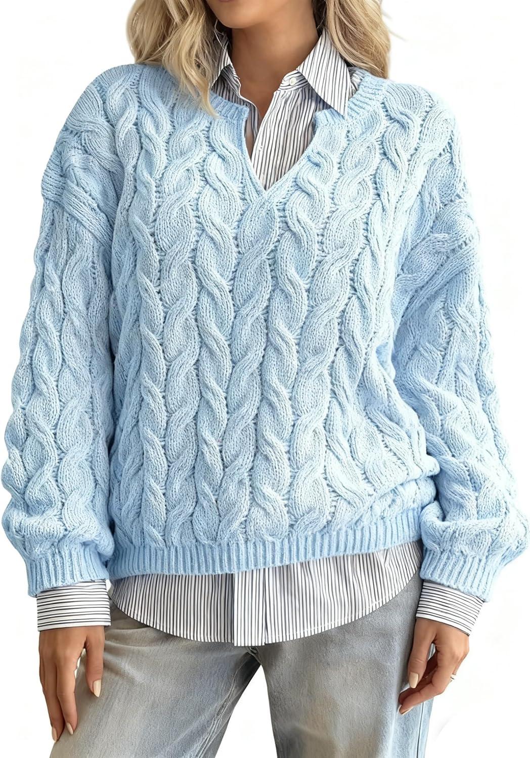 Be the first to review “chouyatou Women Fall Notch V-Neck Cable Knit Pullover Sweater Loose Winter Chunky Cozy Sweater Jumper Top(Light Blue)” Cancel reply