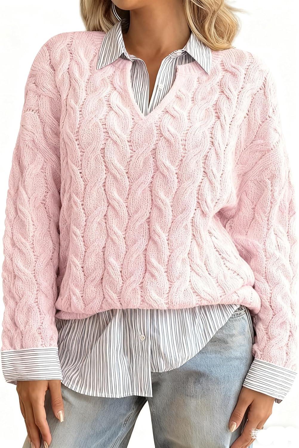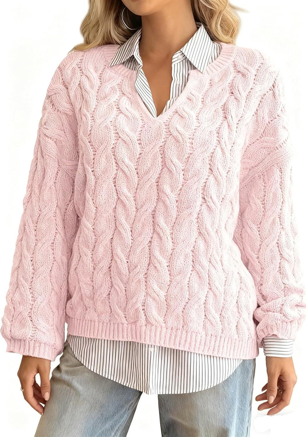 Be the first to review “chouyatou Women Fall Notch V-Neck Cable Knit Pullover Sweater Loose Winter Chunky Cozy Sweater Jumper Top(Pink)”