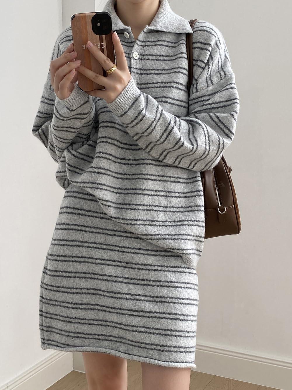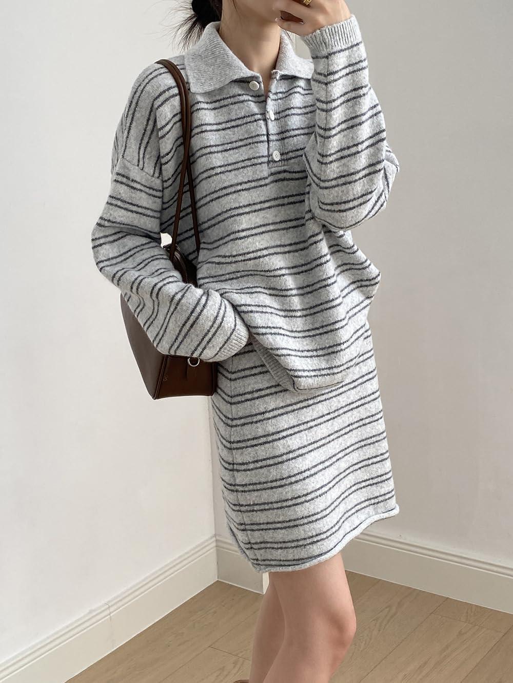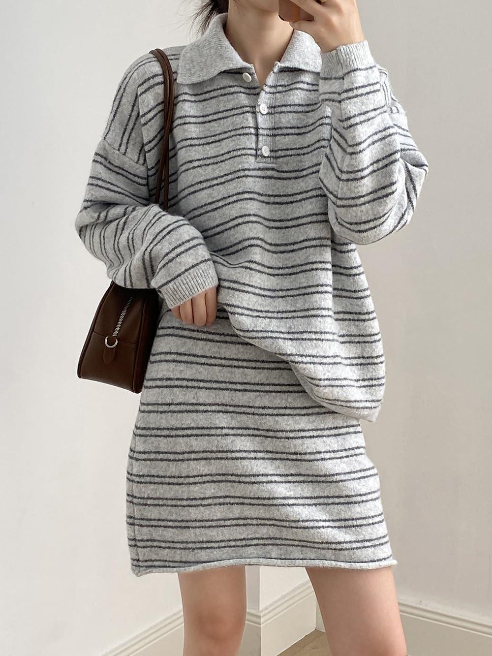 Be the first to review “chouyatou Women’s 2 Piece Outfits Polo Collar Striped Sweater Mini Skirt Set 2025 Casual Sweater Top Matching Sets(Light Gray)” Cancel reply