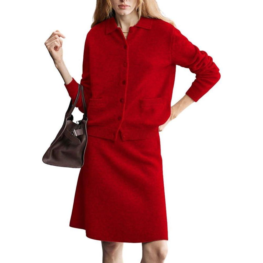 Be the first to review “chouyatou Women’s 2 Piece Sweater Skirt Set Button Down Lapel Cardigan Midi Skirt Sets Travel Matching Outfits(Red)” Cancel reply