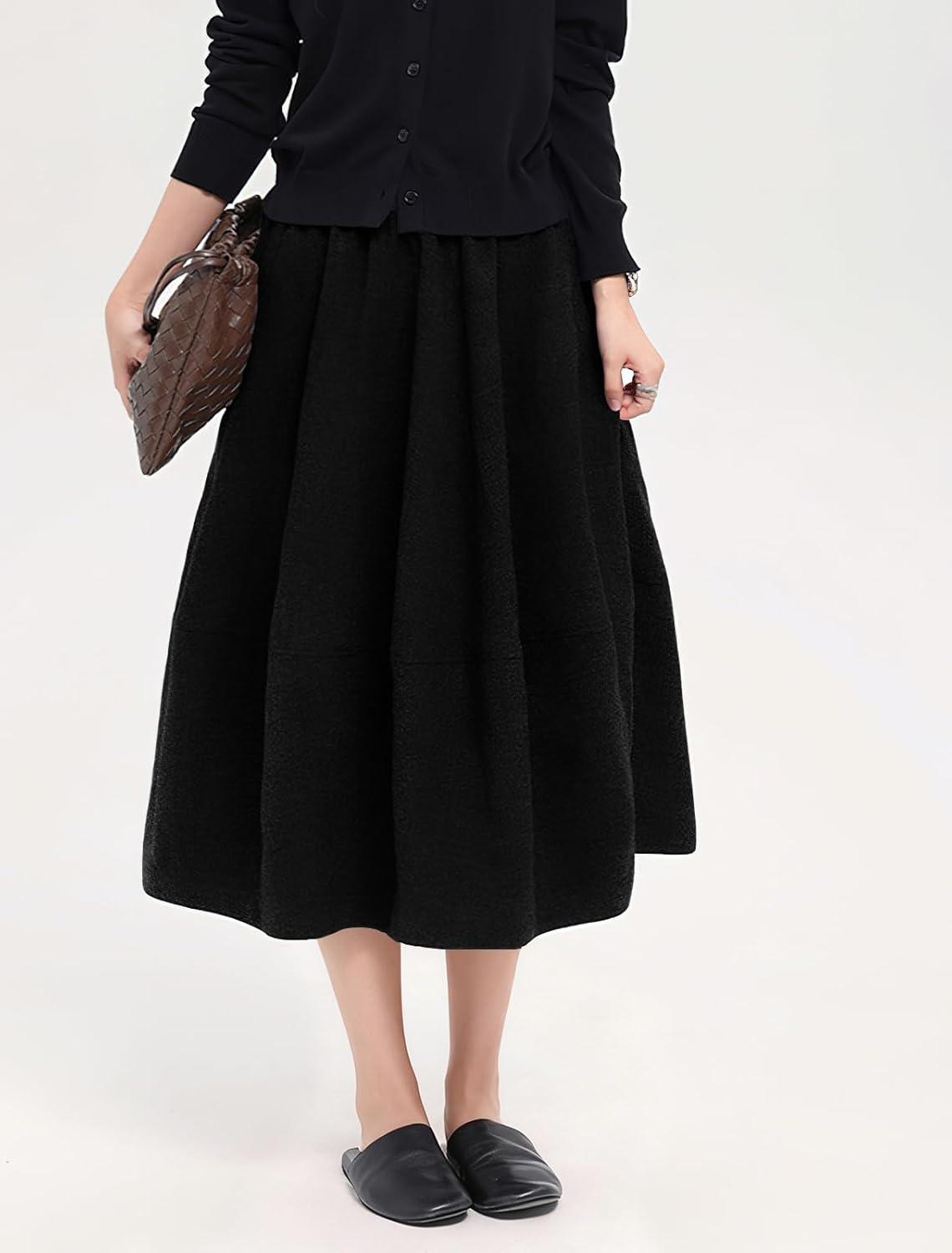 chouyatou Women’s 2025 A-Line Wool Winter Fall Skirt Cute Y2K Elastic Waist Pleated Flowy Midi Long Skirt(Black)