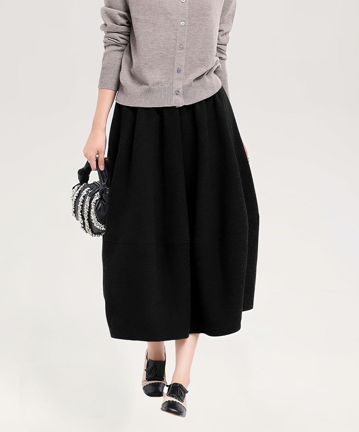 chouyatou Women's 2025 A-Line Wool Winter Fall Skirt Cute Y2K Elastic Waist Pleated Flowy Midi Long Skirt(Black)