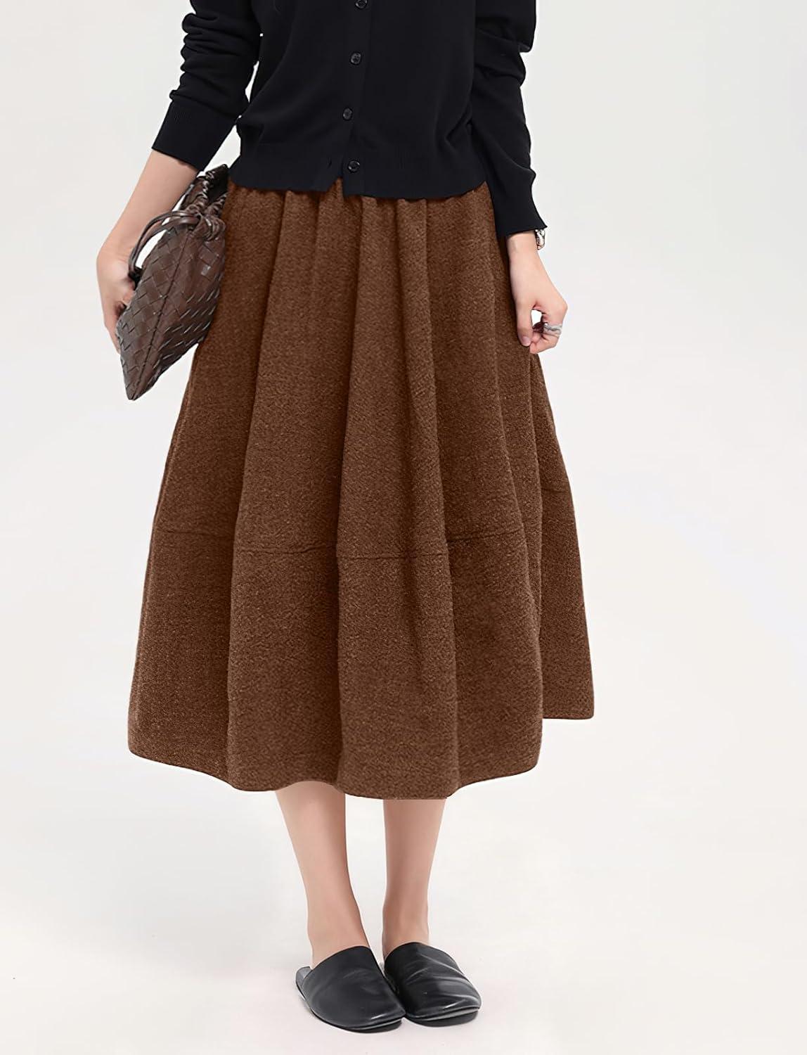 chouyatou Women’s 2025 A-Line Wool Winter Fall Skirt Cute Y2K Elastic Waist Pleated Flowy Midi Long Skirt(Coffee)