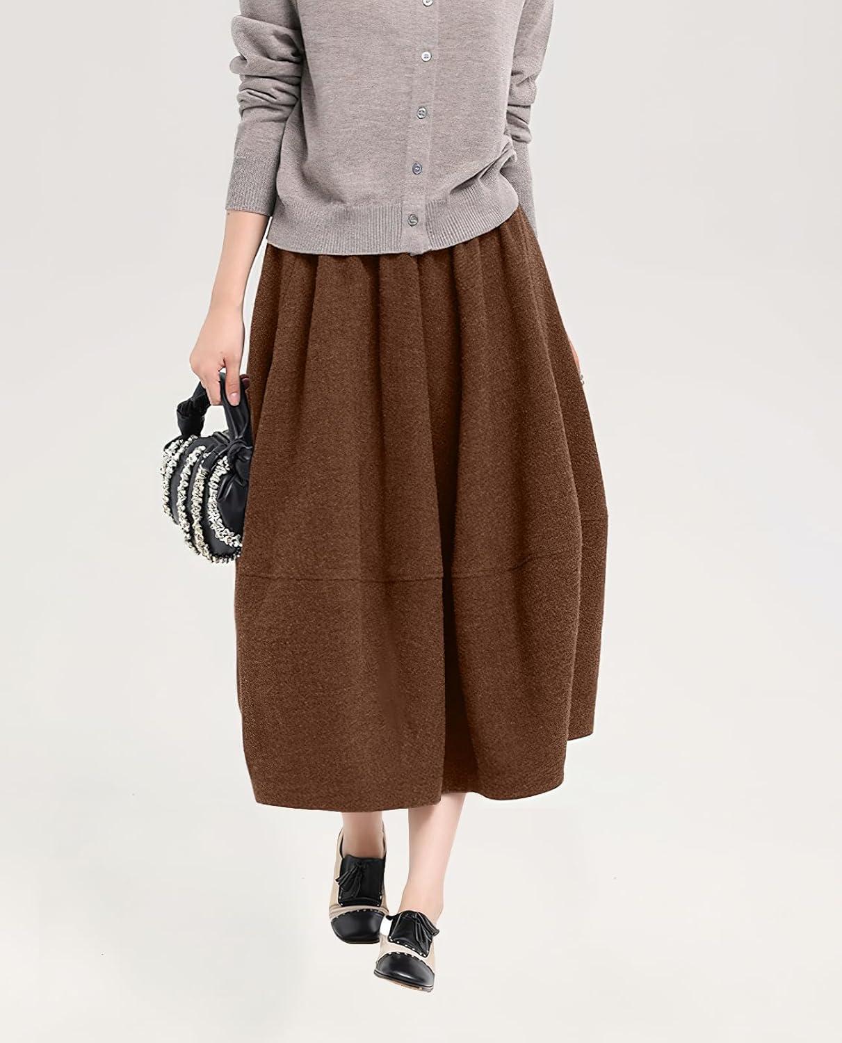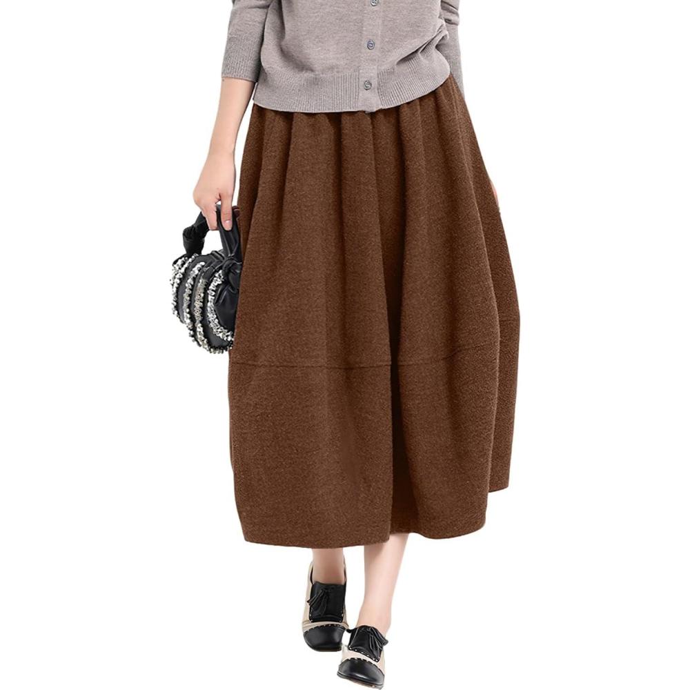 chouyatou Women's 2025 A-Line Wool Winter Fall Skirt Cute Y2K Elastic Waist Pleated Flowy Midi Long Skirt(Brown)