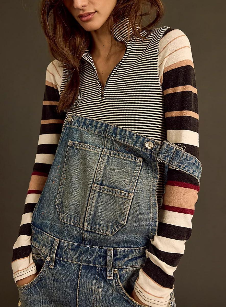 Be the first to review “chouyatou Women’s 2025 Baggy Adjustable Strap Denim Bib Overall Distressed Wide Leg Barrel Jeans Overall Jumpsuits(Retro Blue)”