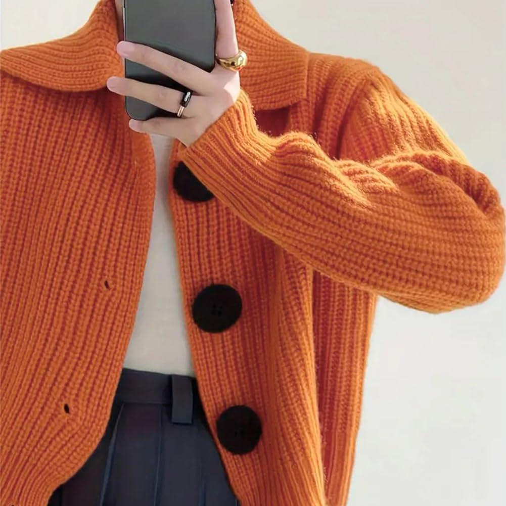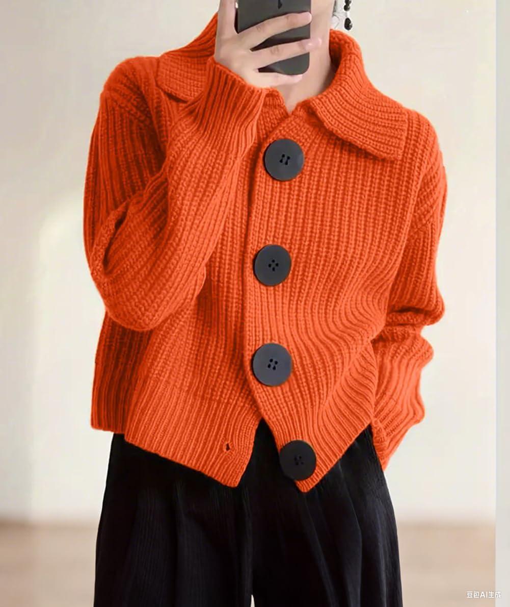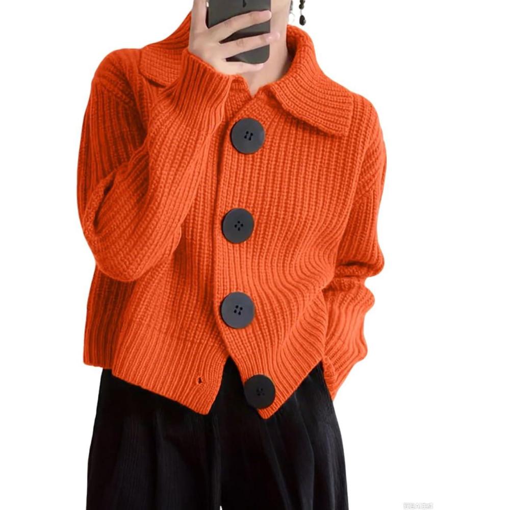 chouyatou Women’s 2025 Fall Button Down Cropped Cardigan Sweater Chunky Knit Work Casual Cardigan Jacket(Orange)