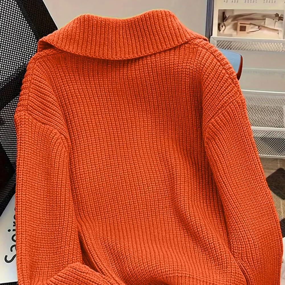 imagechouyatou Womens 2025 Fall Button Down Cropped Cardigan Sweater Chunky Knit Work Casual Cardigan JacketOrange