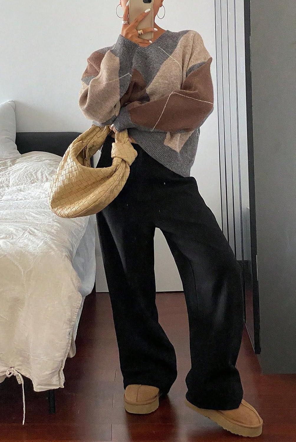 Be the first to review “chouyatou Women’s 2025 Fall V-Neck Argyle Sweaters Pullover Oversized Chunky Knit Casual Sweater Top(Apricot Grey)”