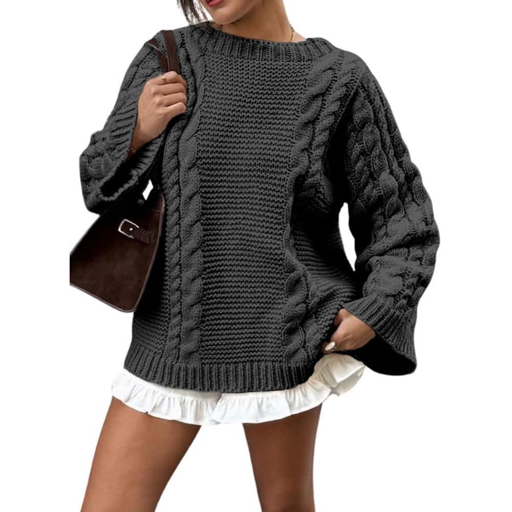 chouyatou Women’s 2025 Fall Winter Cable Knit Sweaters Oversized Chunky Knit Casual Sweater Pullover Tops(Dark Grey)