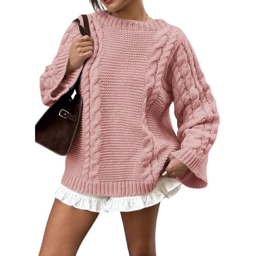 chouyatou Women’s 2025 Fall Winter Cable Knit Sweaters Oversized Chunky Knit Casual Sweater Pullover Tops(Pink)