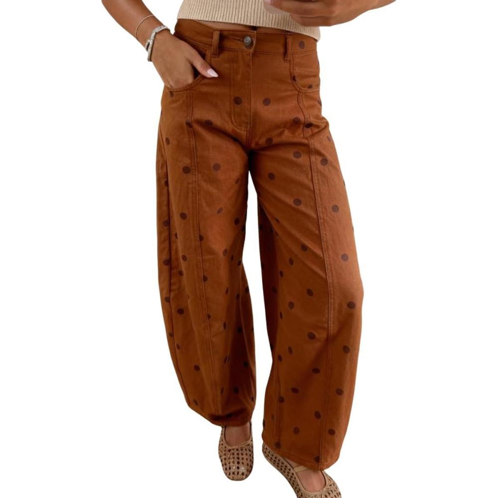 chouyatou Women's 2025 Polka Dot Pattern Barrel Jeans Boyfriend Y2K Casual Wide Leg Mid Rise Denim Pants(Caramel)