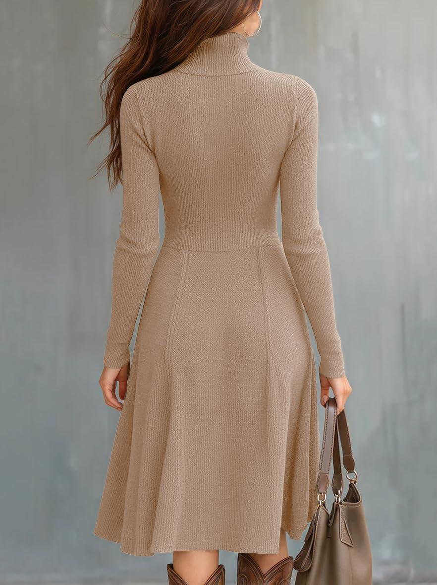 chouyatou Women’s 2025 Winter Fall Dresses Long Sleeve Semi Formal A-Line Rib Knit Midi Long Sweater Dress(Khaki)