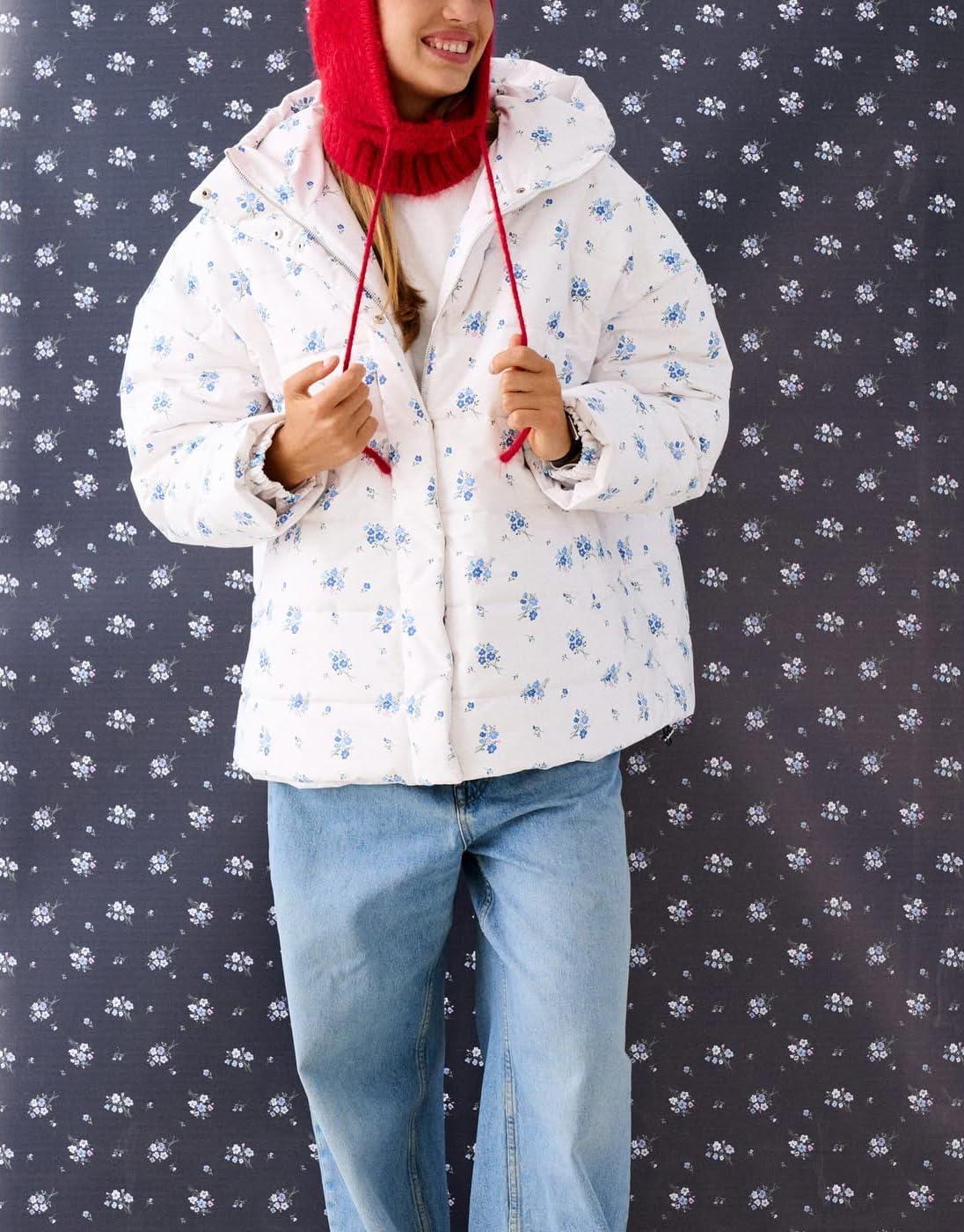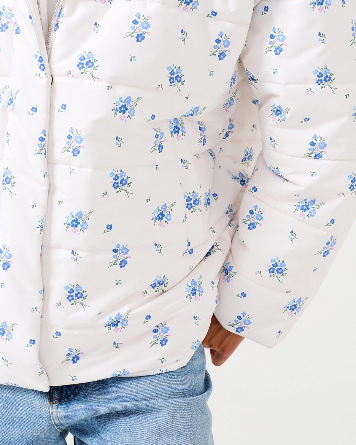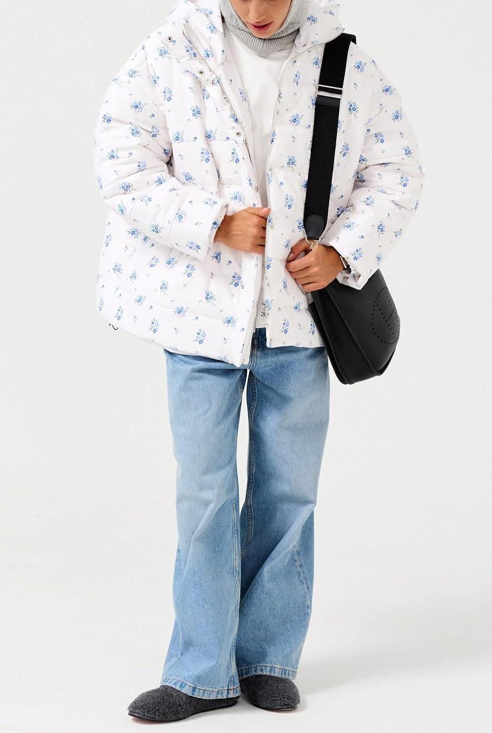 chouyatou Women’s 2025 Winter Warm Floral Print Puffer Jacket Oversized Quilted Baggy Hooded Down Jacket(White)