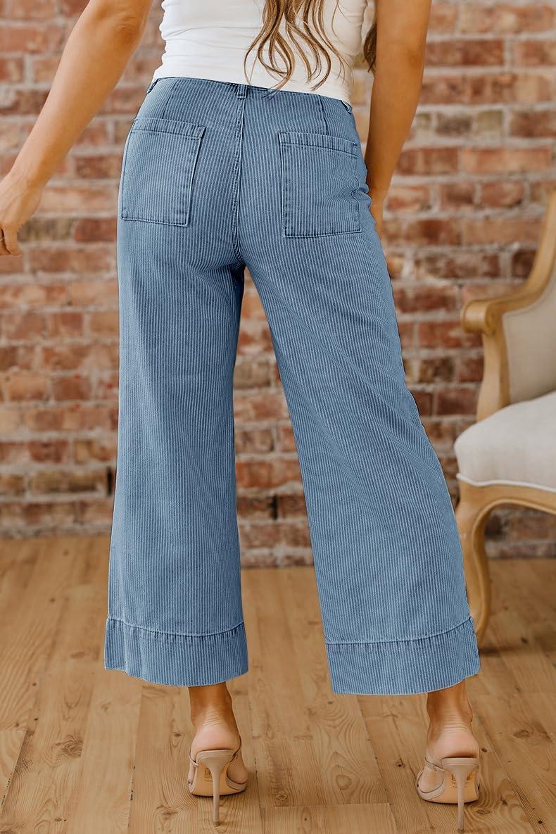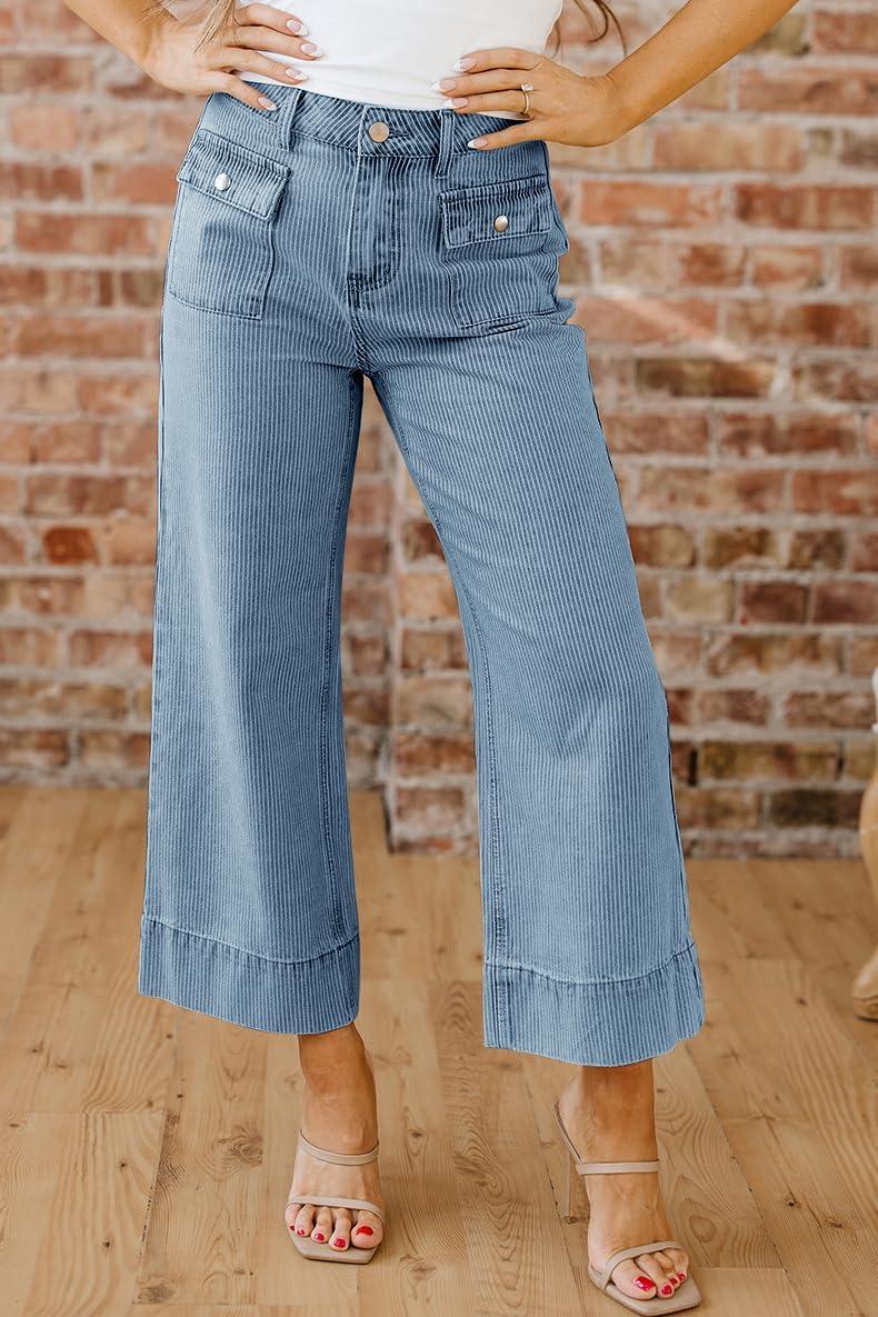 CHOUYATOU Women’s 2026 Striped Wide Leg Jeans Vintage Barrel Denim Pants Y2k Boyfriend Baggy Capri Jeans(Medium Blue)
