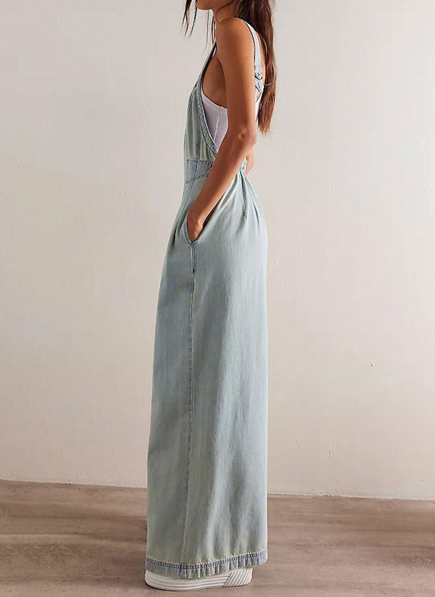 Get the chouyatou Women’s Adjustable Strap Denim Bib Overall Casual Loose Pleated Wide Leg Jeans Jumpsuits with Pockets(Light Blue) you want at a price you can afford with our markdown sale.