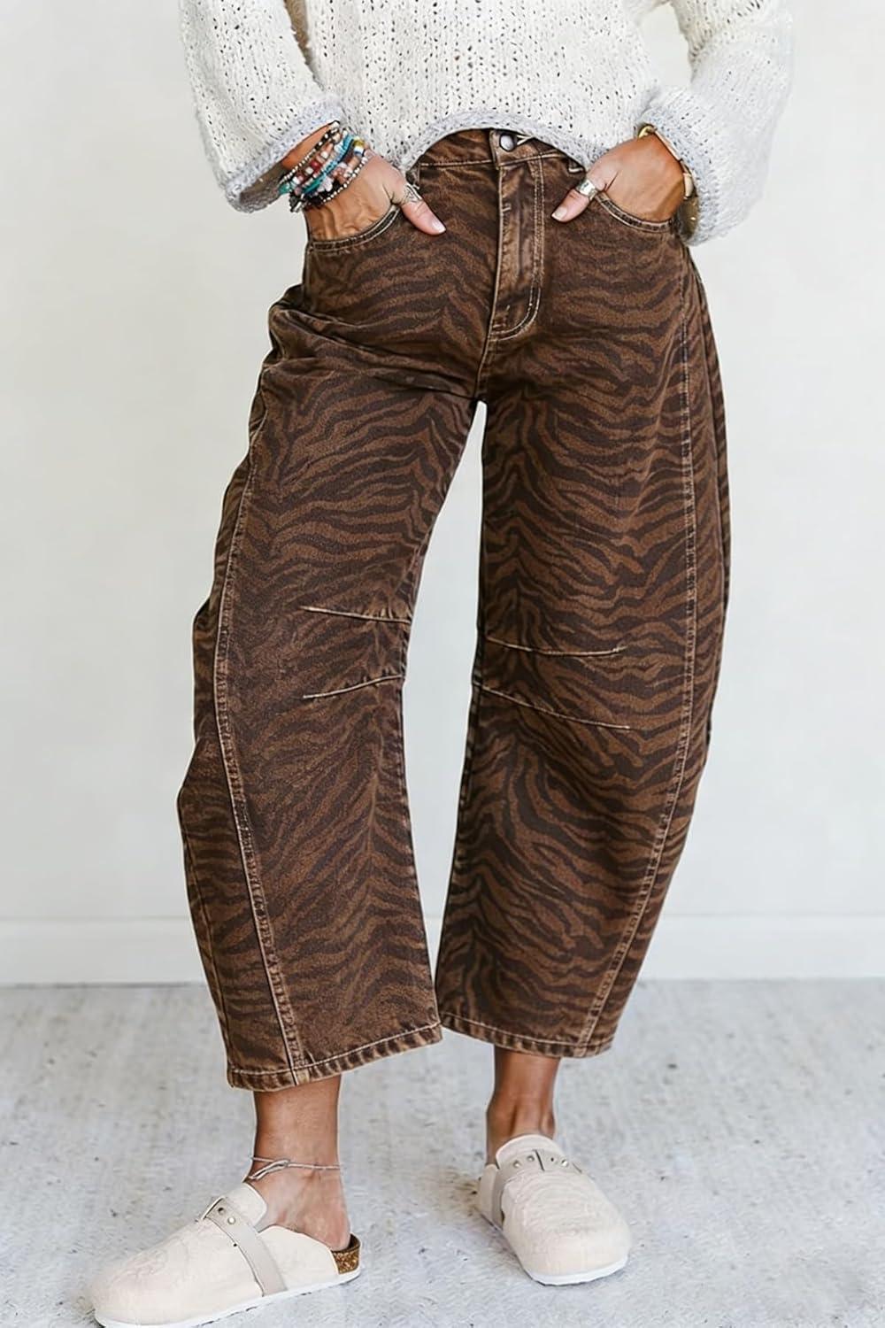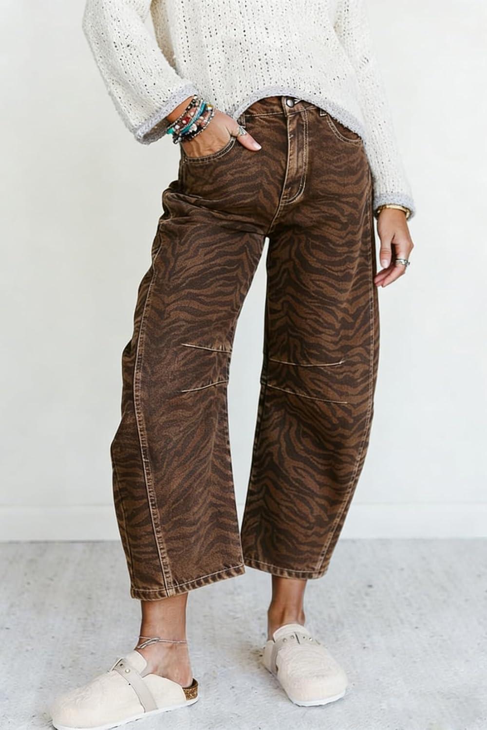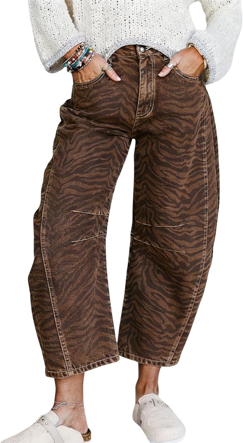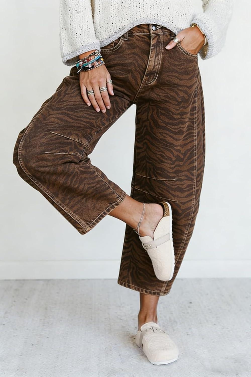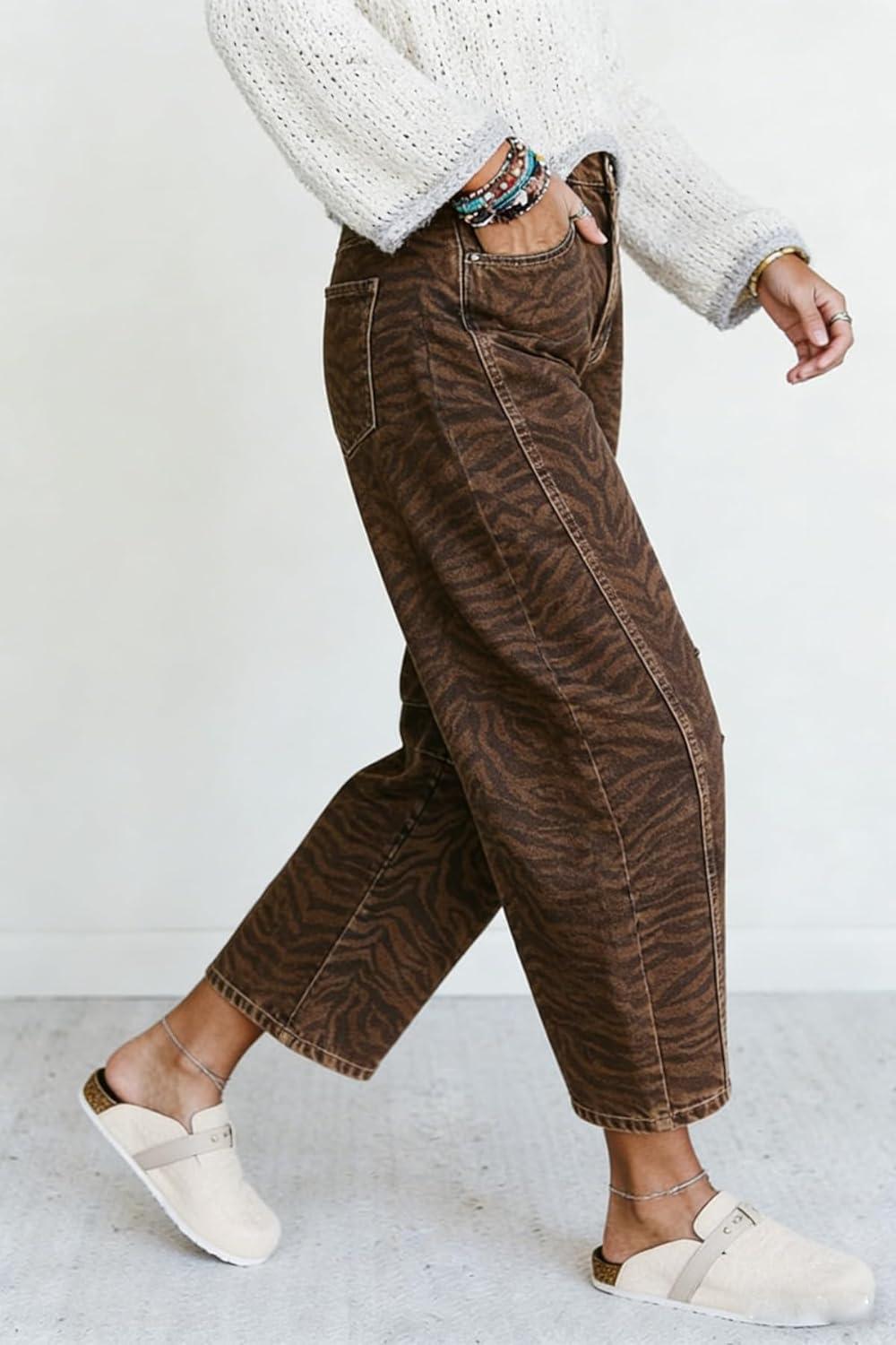 CHOUYATOU Women’s Baggy Barrel Jeans Wide Leg Boyfriend Jeans High Waisted Y2K Cropped Denim Harem Pants(Brown)