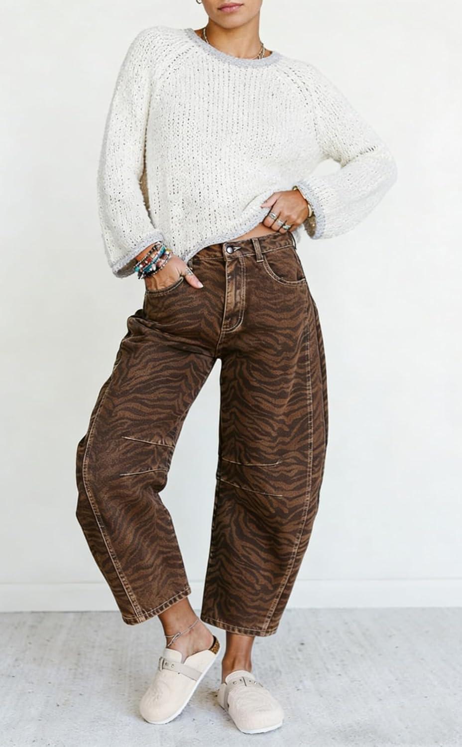 Be the first to review “CHOUYATOU Women’s Baggy Barrel Jeans Wide Leg Boyfriend Jeans High Waisted Y2K Cropped Denim Harem Pants(Brown)”