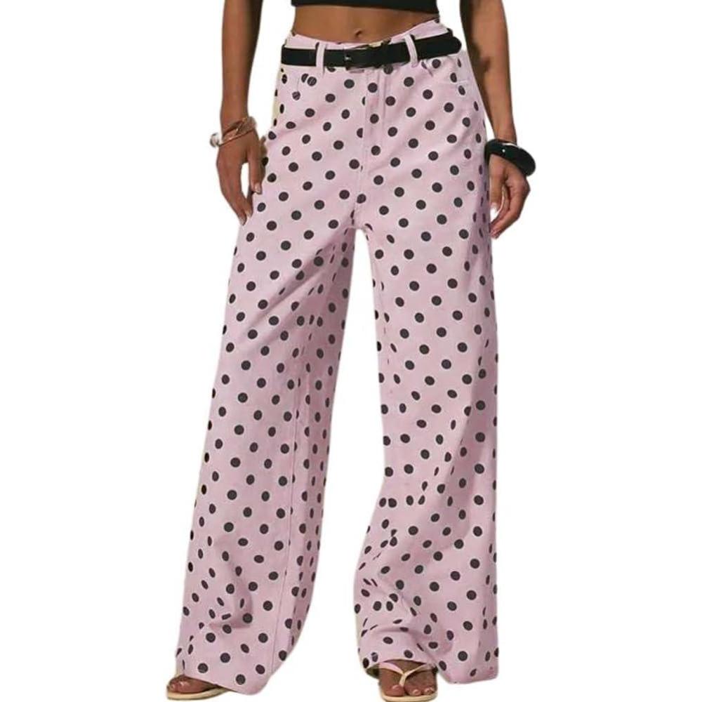 Be the first to review “chouyatou Women’s Boyfriend Polka Dot Wide Leg Jeans Y2K Casual Mid Rise Denim Pants with Pockets(Pink)”