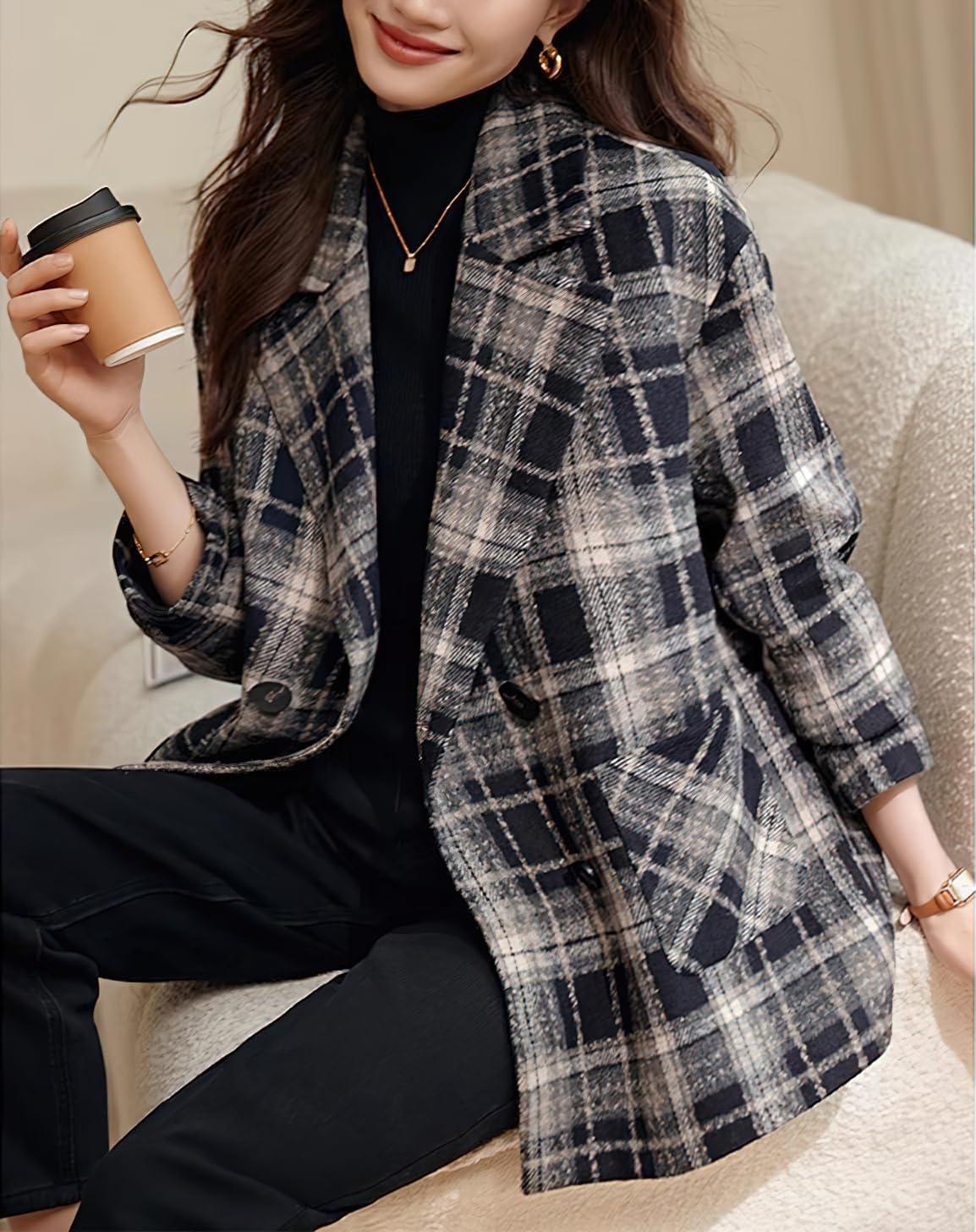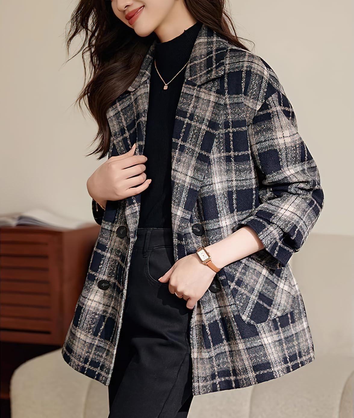 Get your hands on our exclusive chouyatou Women’s Business Casual Wool Blazer Jacket Coat Notched Collar Double Breasted Plaid Pea Coat(Dark Blue) collection, now at a discounted price.