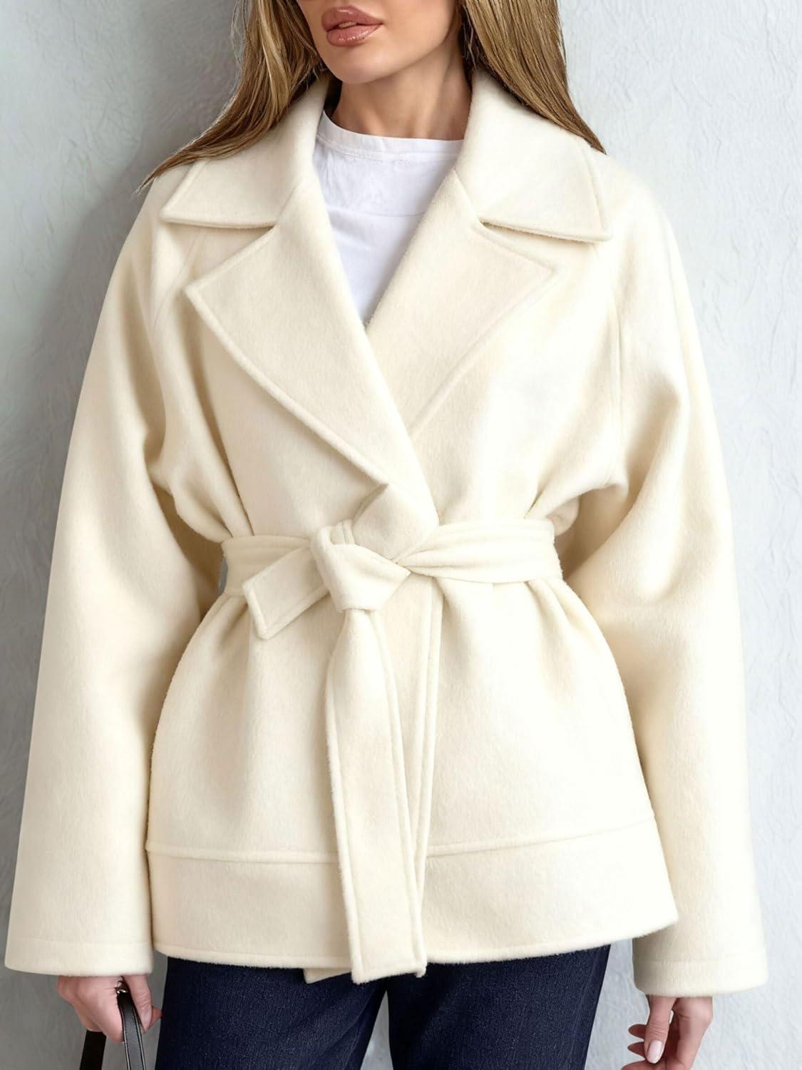 imagechouyatou Womens Business Casual Wool Coat Suit Top Loose Dressy Blazer Jacket Trench Coat with BeltBeige