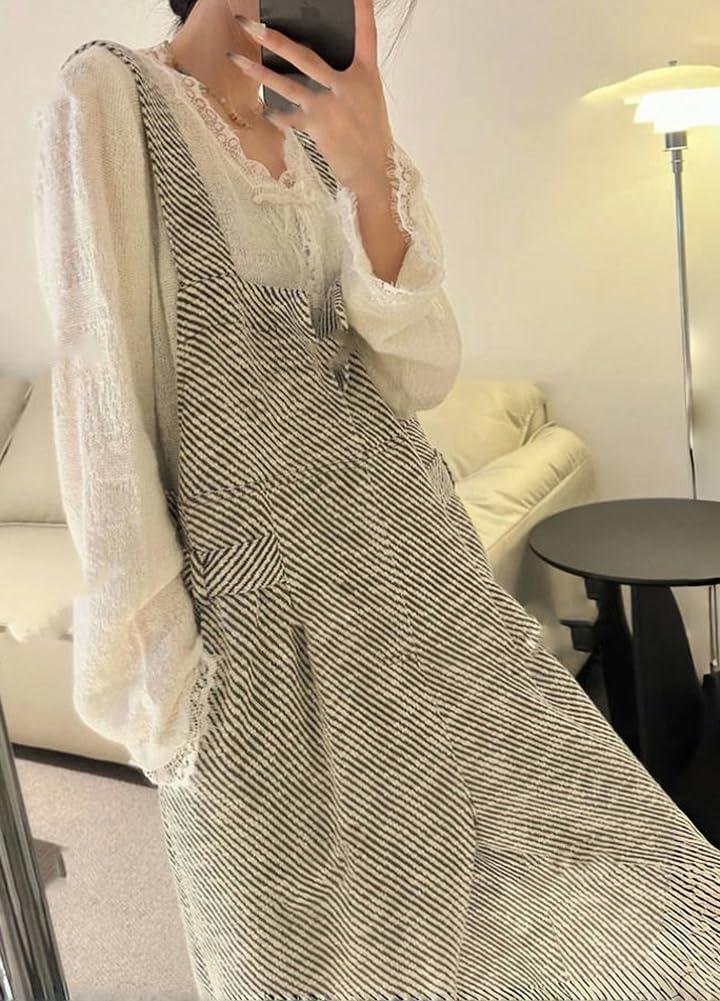 imagechouyatou Womens Casual Adjustable Strap Striped Overall Sleeveless Loose Baggy One Piece Jumpsuit Long PantsBlack