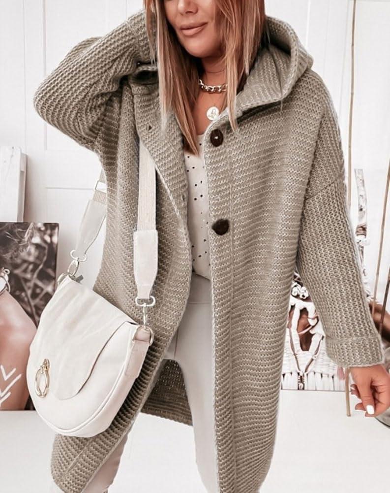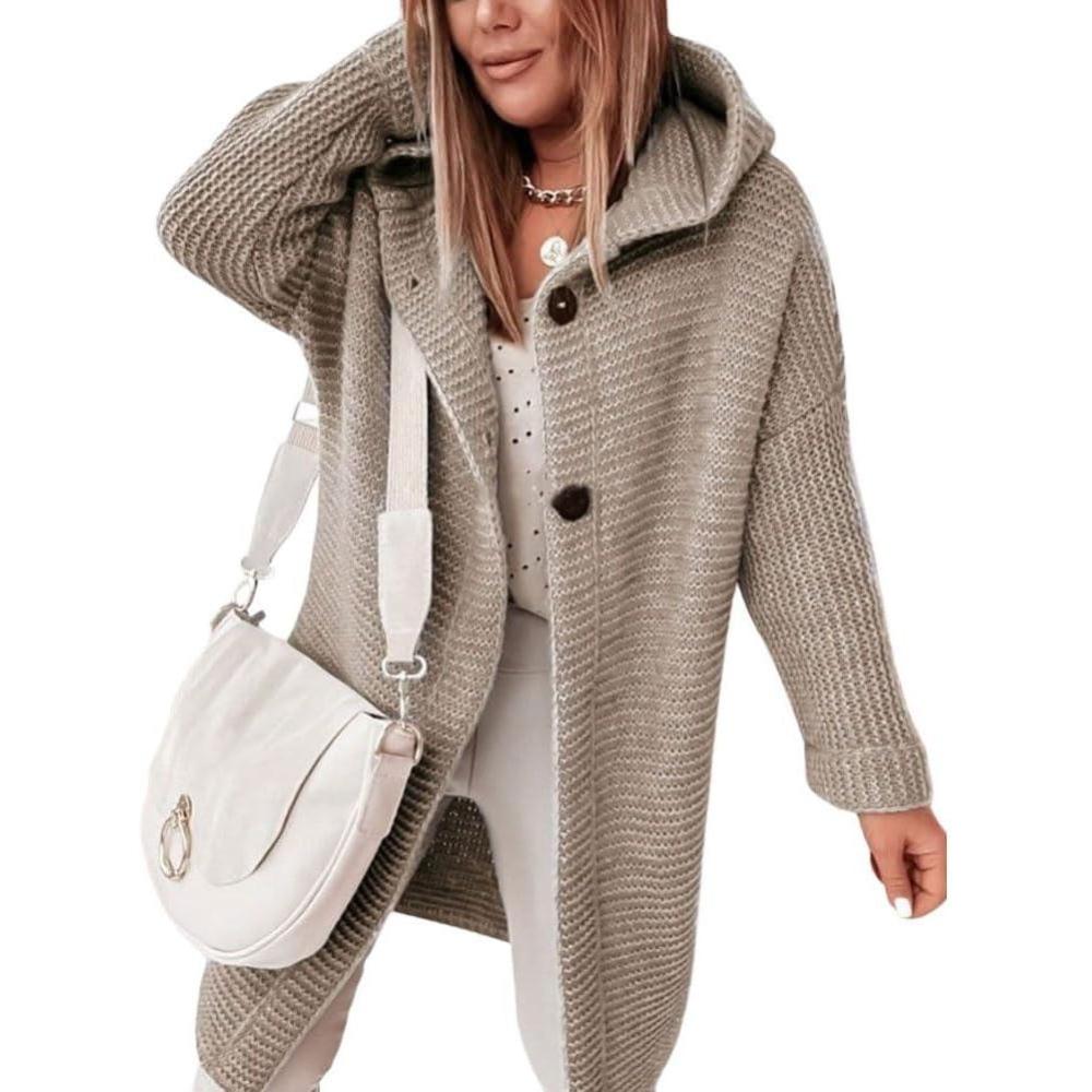 chouyatou Women’s Casual Hooded Chunky Cardigans Slouchy Oversize Knitted Mid Long Cardigan Sweater Outerwear Jacket(Khaki)