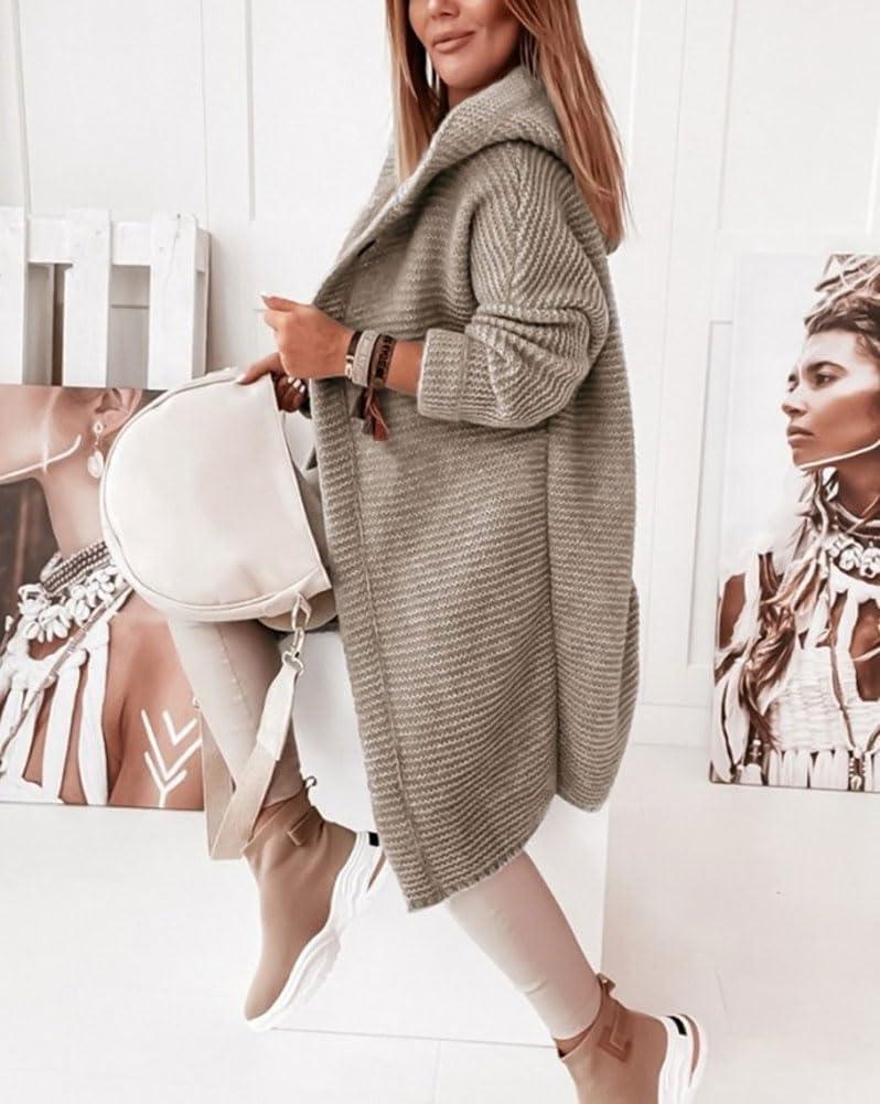 imagechouyatou Womens Casual Hooded Chunky Cardigans Slouchy Oversize Knitted Mid Long Cardigan Sweater Outerwear JacketKhaki