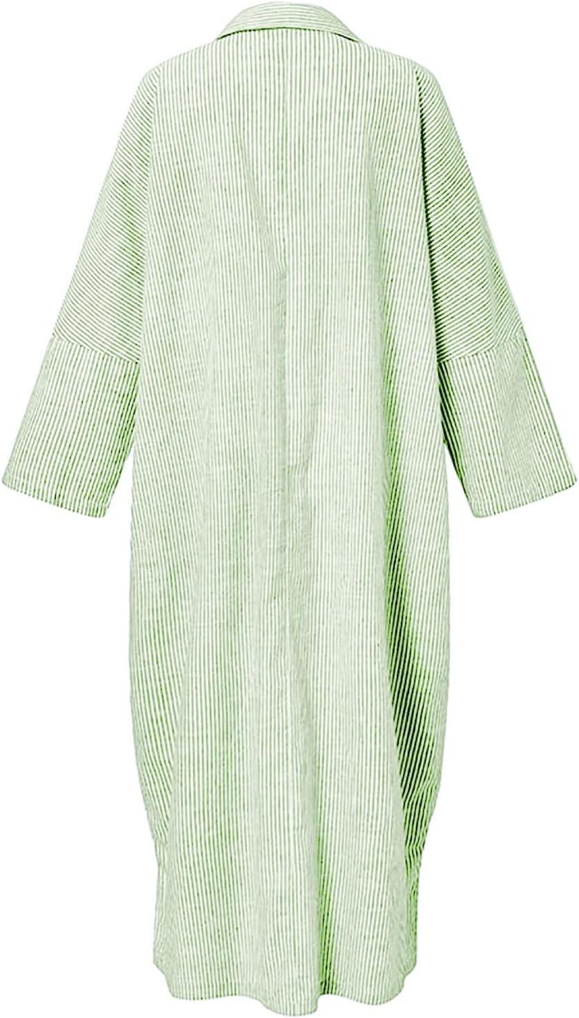 imagechouyatou Womens Casual Long Sleeve Button Down Loose Striped Cotton Maxi Shirt DressGreen