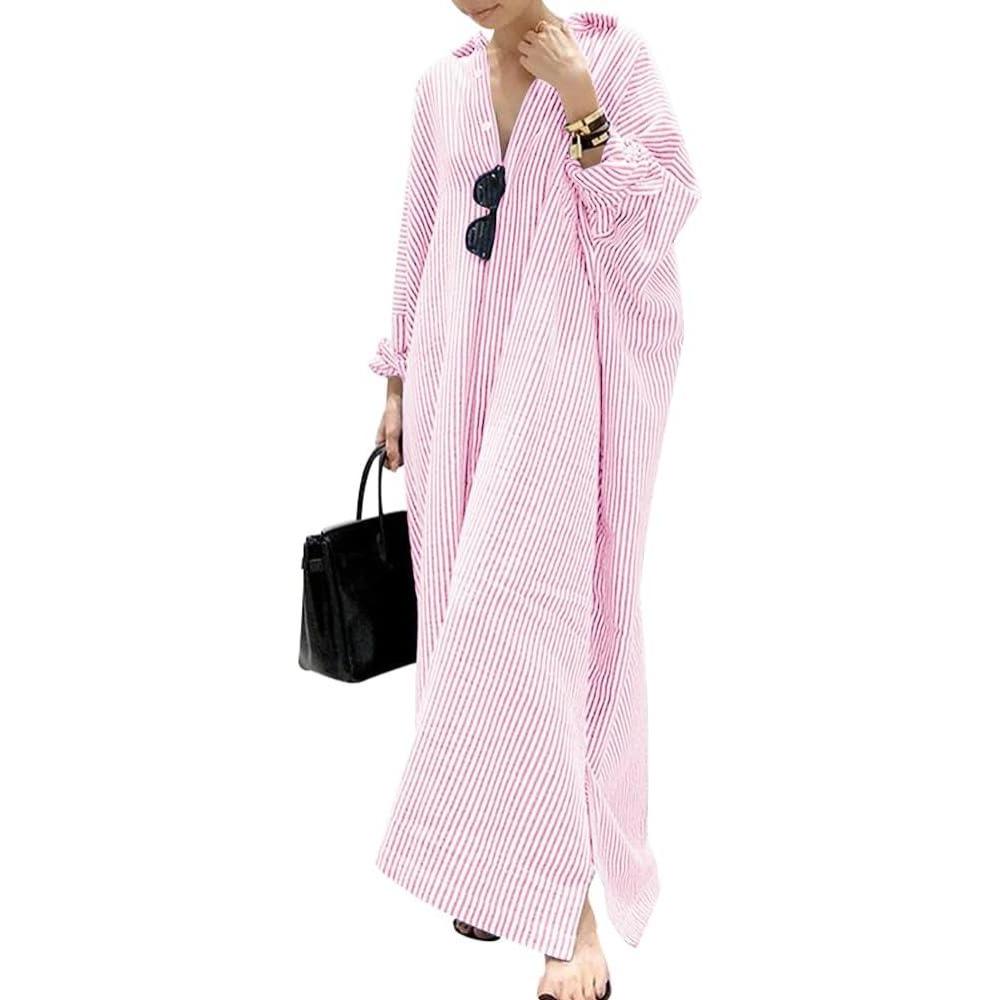 chouyatou Women’s Casual Long Sleeve Button Down Loose Striped Cotton Maxi Shirt Dress(Pink)