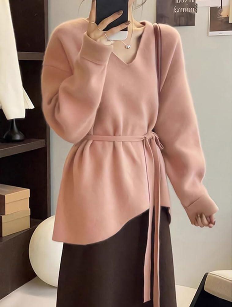 Be the first to review “chouyatou Women’s Casual V Neck Belted Pullover Sweaters Asymmetrical Hem Knitted Sweater Tunic Jumper Tops(Pink)” Cancel reply