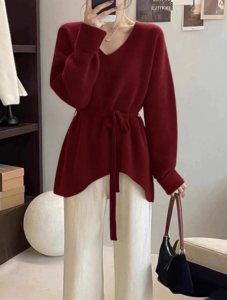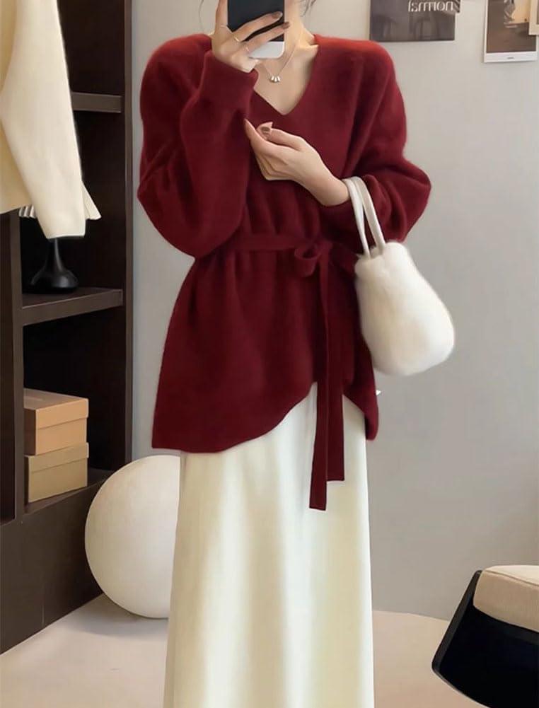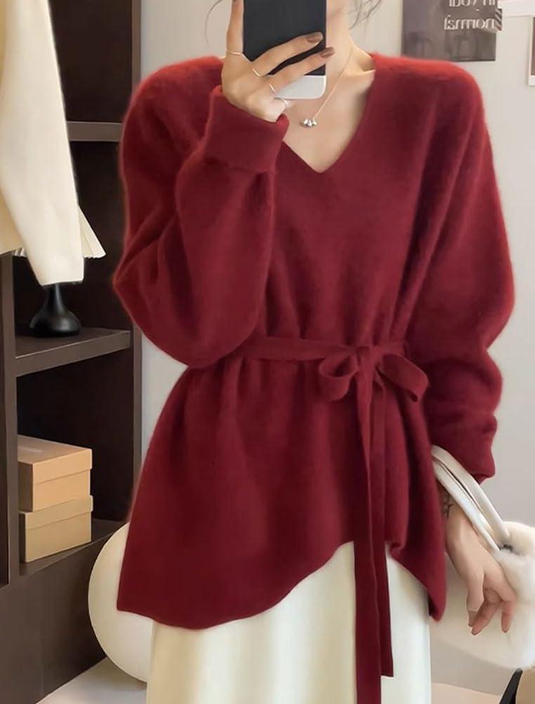 Be the first to review “chouyatou Women’s Casual V Neck Belted Pullover Sweaters Asymmetrical Hem Knitted Sweater Tunic Jumper Tops(Wine Red)” Cancel reply