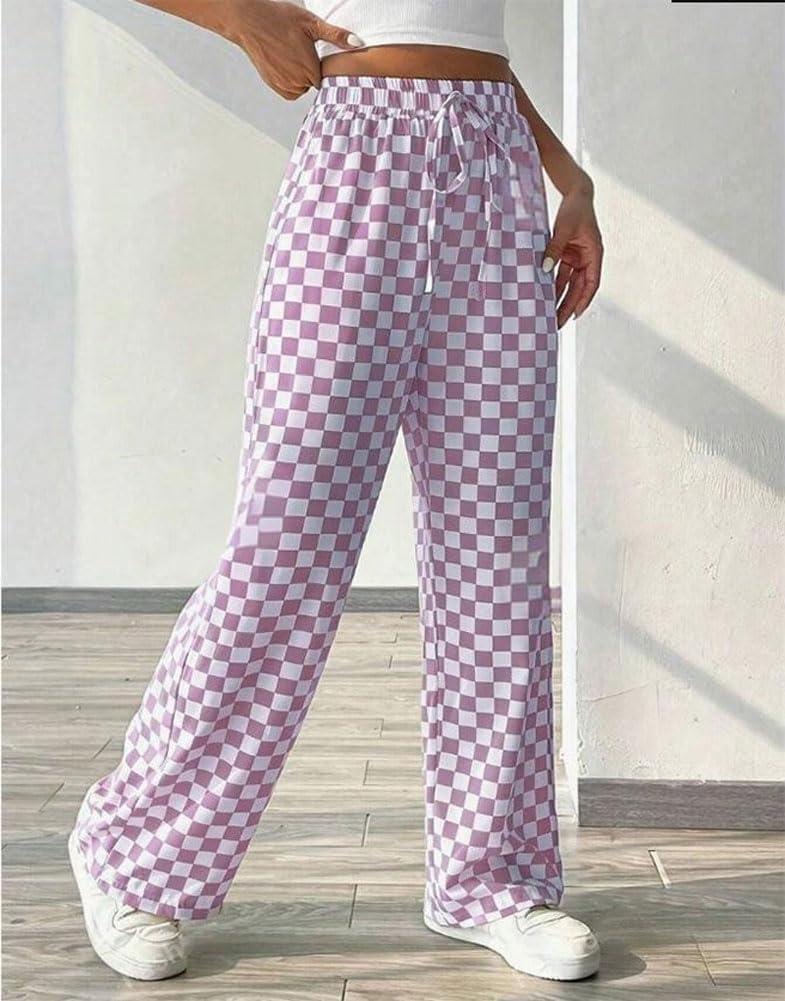 Be the first to review “chouyatou Women’s Checkered Wide Leg Business Casual Pants Plaid Drawstring Elastic Waist Palazzo Pants(Purple)”