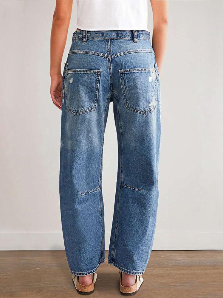 Be the first to review “CHOUYATOU Women’s Distressed Mid Rise Barrel Jeans Boyfriend Y2K Ripped Patchwork Denim Pant with Pockets(Blue)”