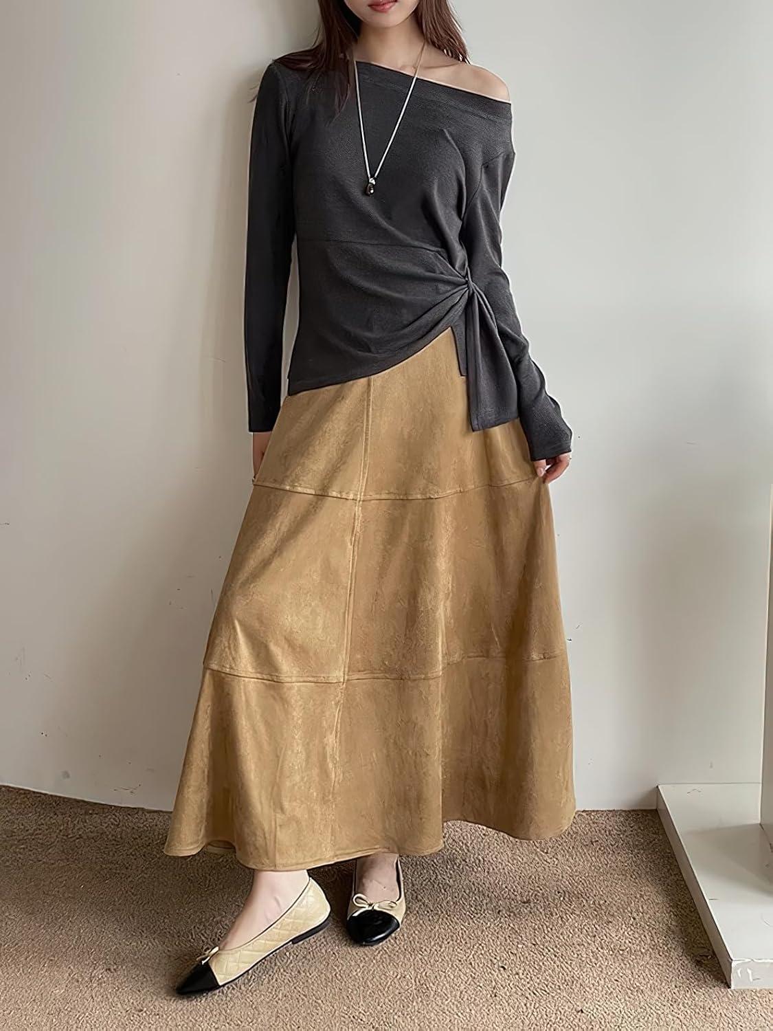 Be the first to review “chouyatou Women’s Elegant Ruffle Faux Suede Leather Skirt High Waisted A Line Fall Winter Maxi Long Skirt(Brown)”