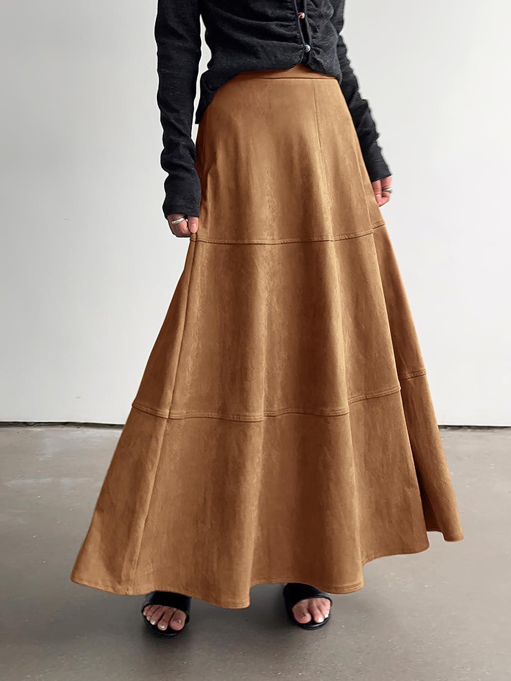 imagechouyatou Womens Elegant Ruffle Faux Suede Leather Skirt High Waisted A Line Fall Winter Maxi Long SkirtCoffee