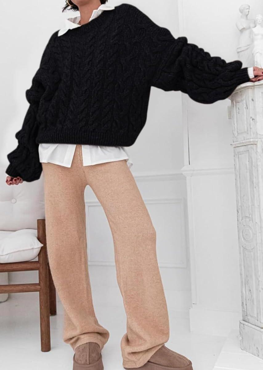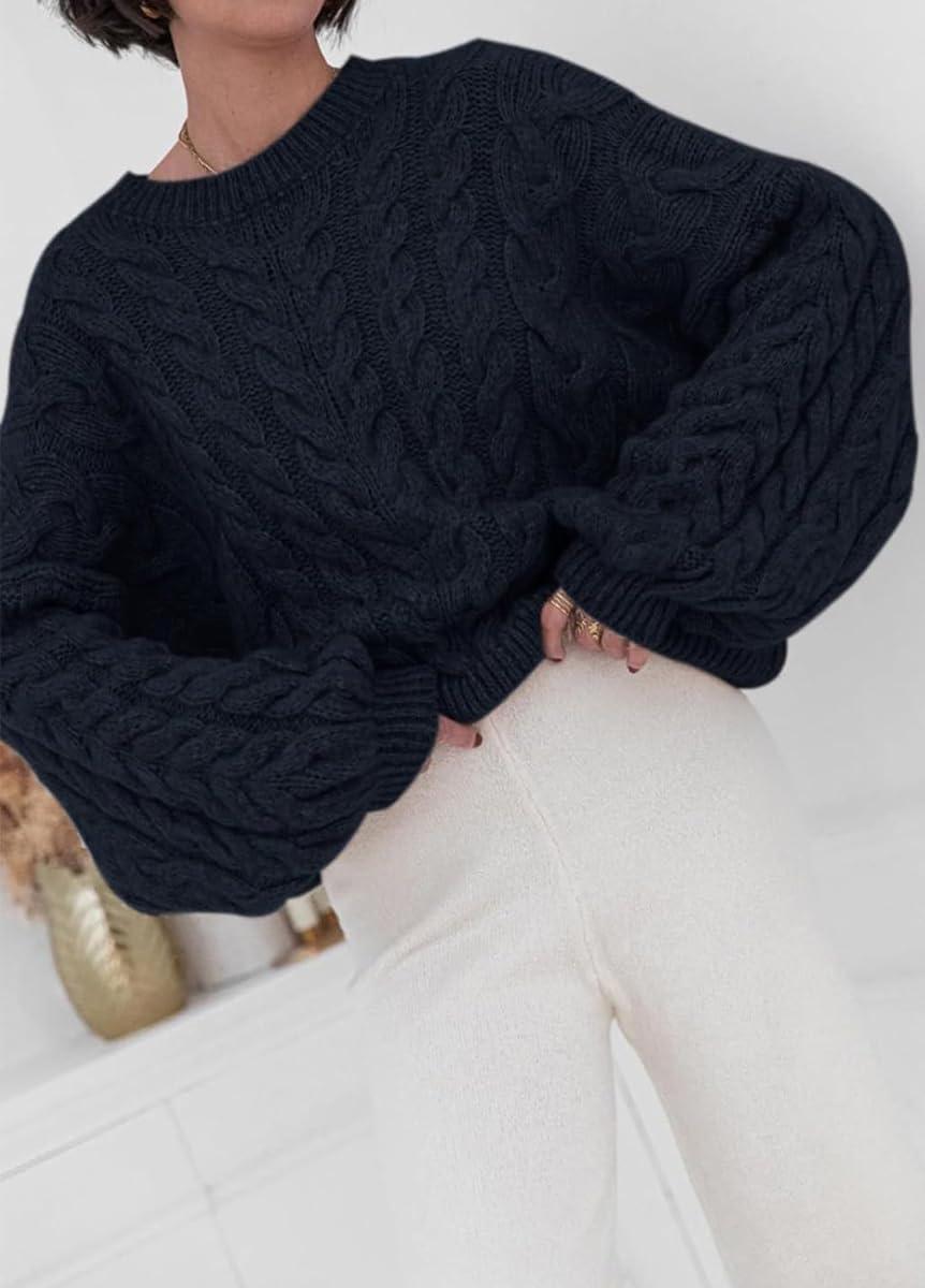 chouyatou Women’s Fall Cable Knit Pullover Sweater Crewneck Loose Chunky Sweater Jumper Tops(Black)