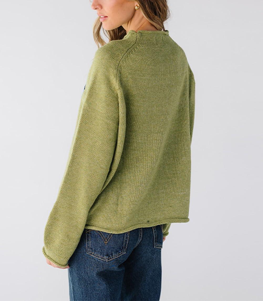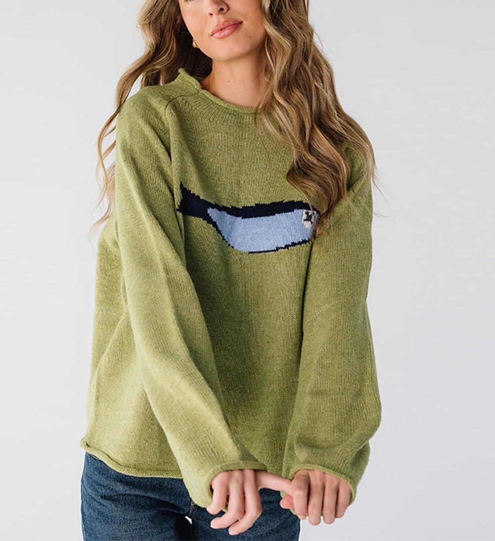 chouyatou Women’s Fall Graphic Chunky Knit Pullover Sweater Cute Y2K Curled Crewneck Oversized Sweater Top(Green)