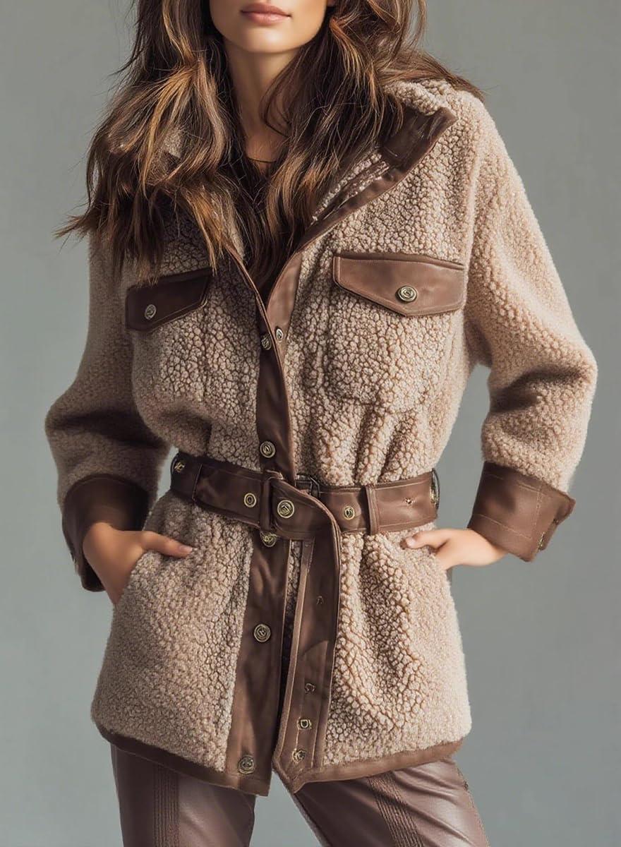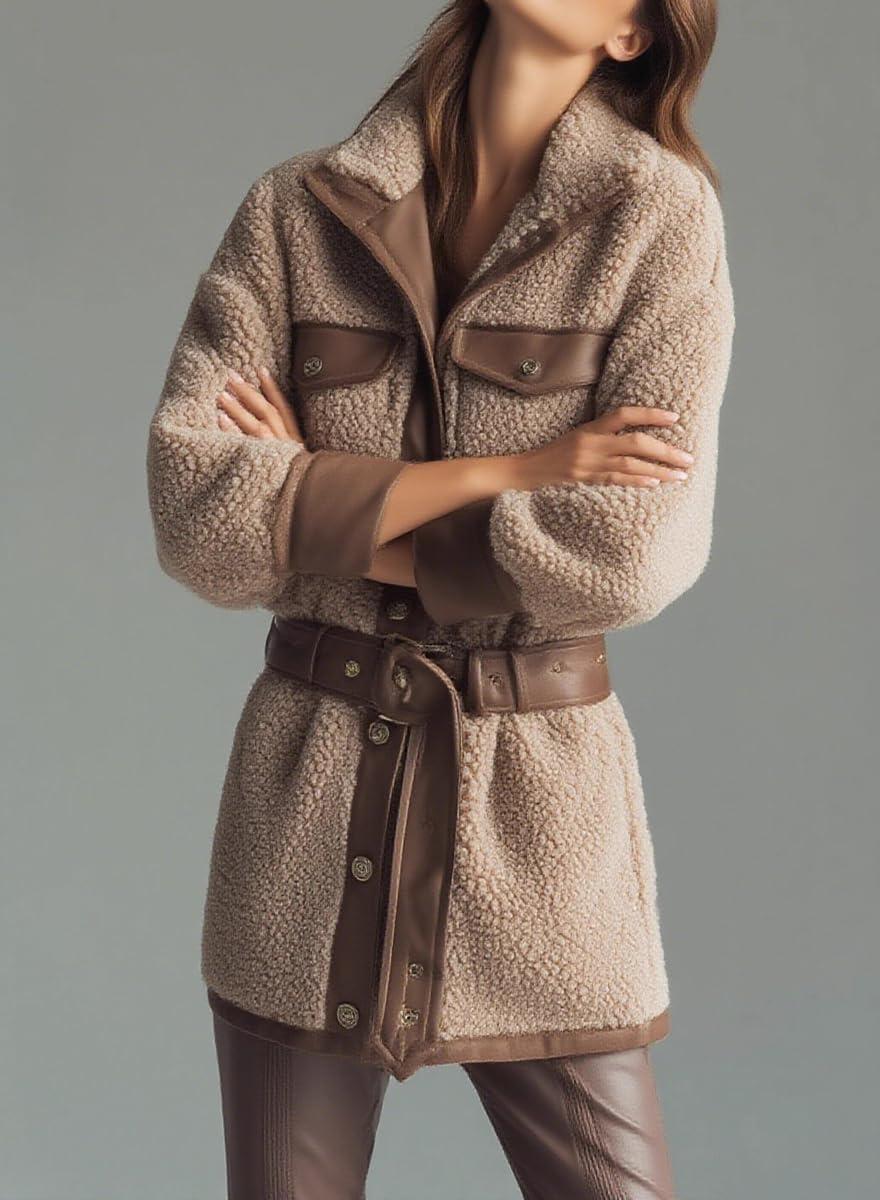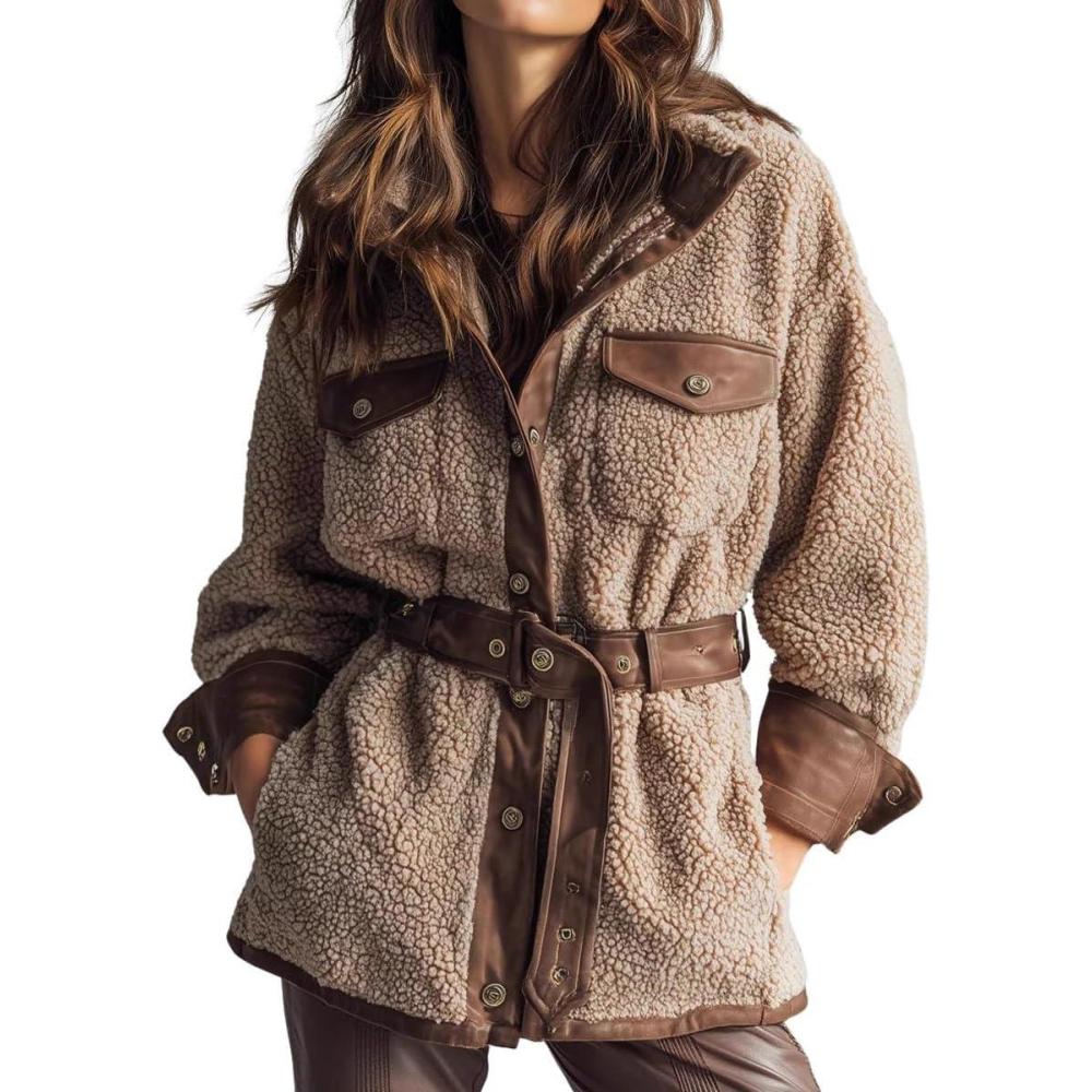 Be the first to review “chouyatou Women’s Fall Winter Fluffy Fleece Jacket Faux PU Leather Splicing Belted Midi Long Shacket Jackets(Khaki)” Cancel reply