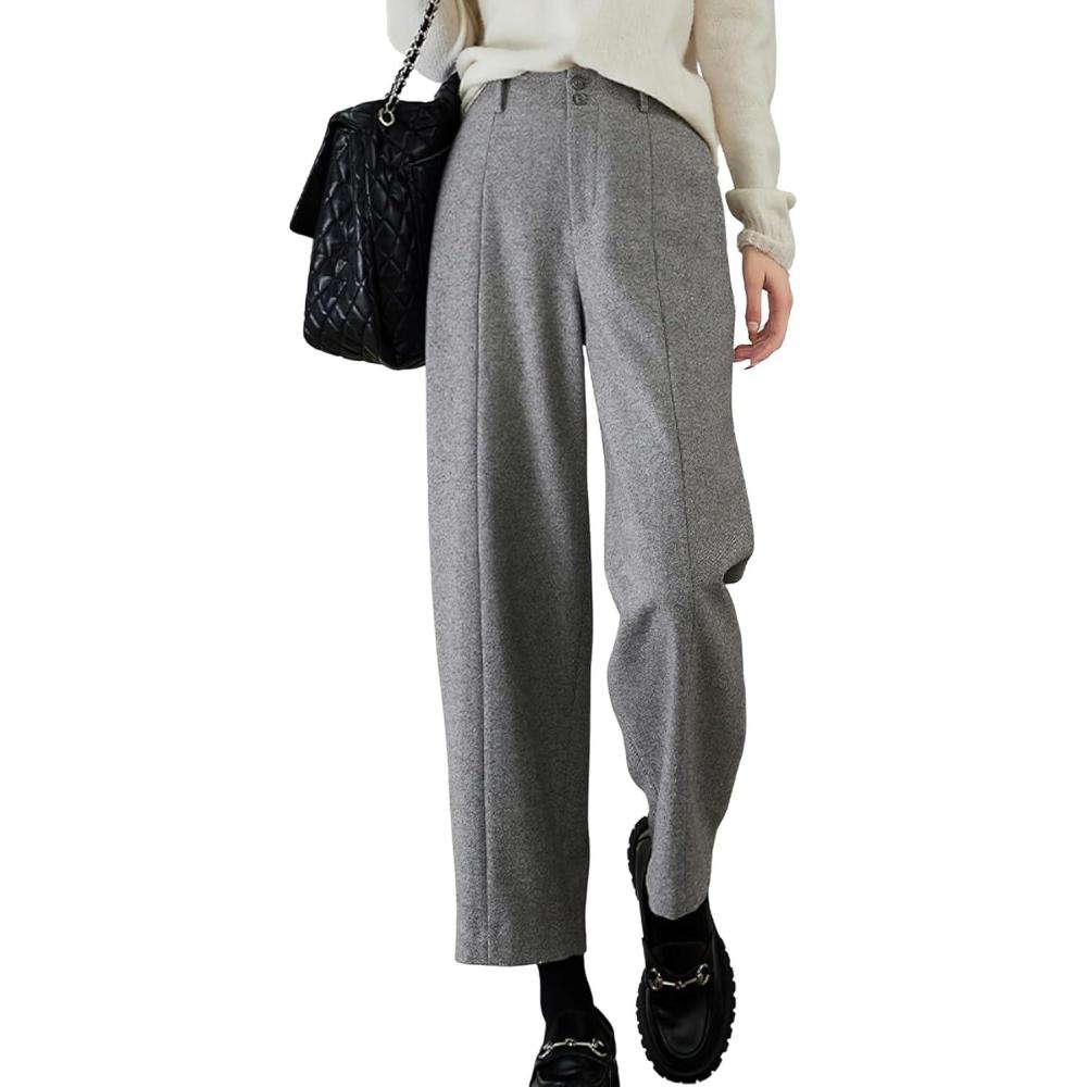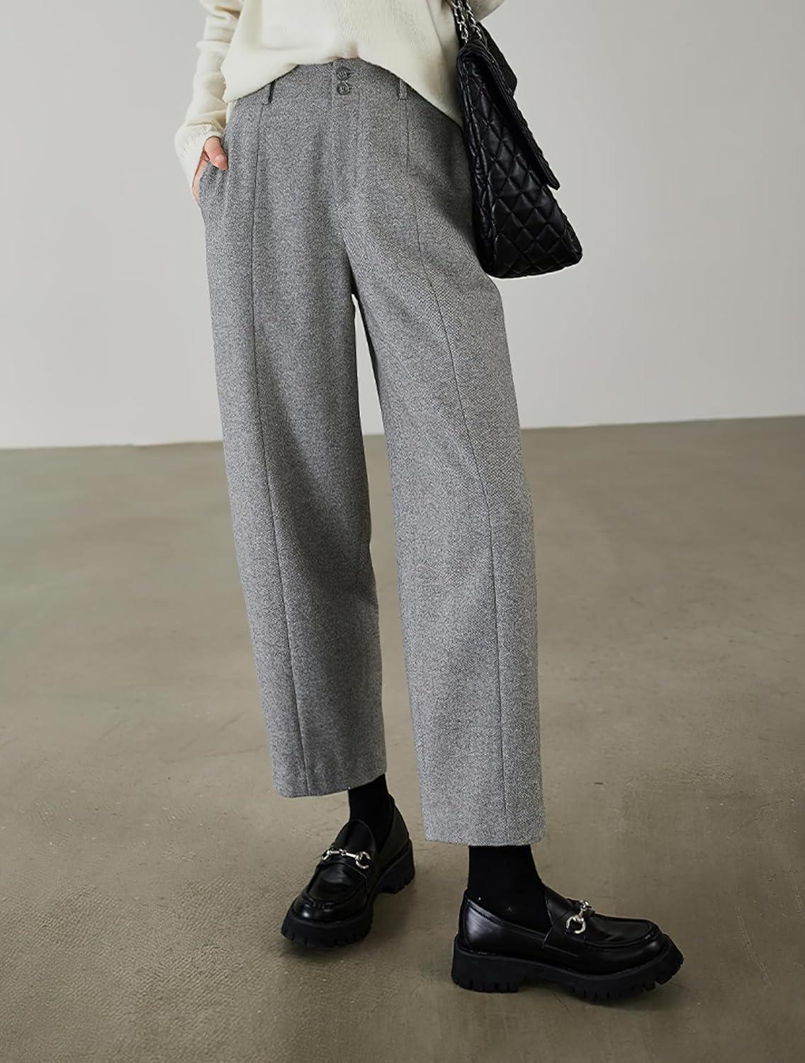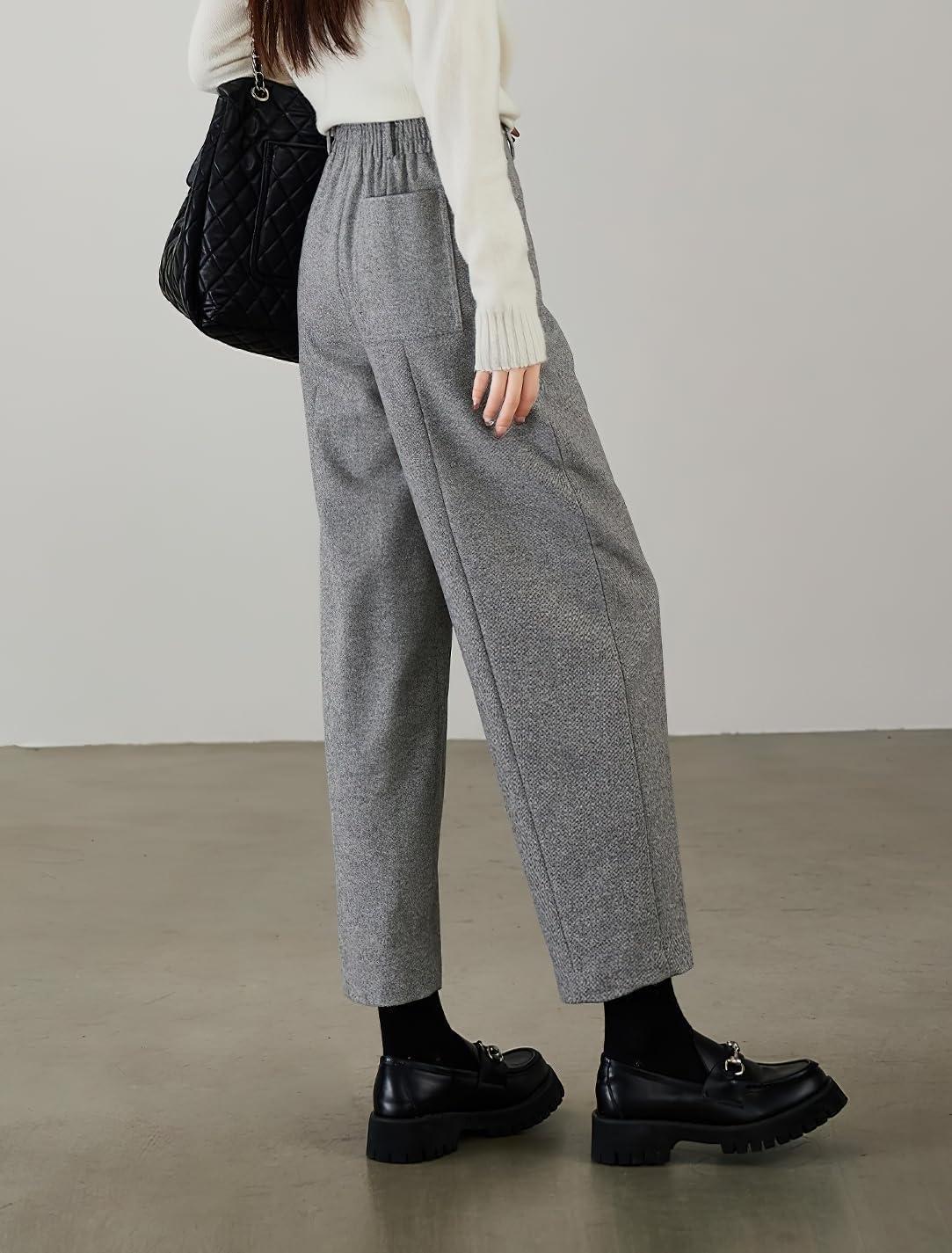 imagechouyatou Womens Fall Winter Wool Pants Elastic Waist Dressy Work Business Casual Slacks Cropped TrouserGrey