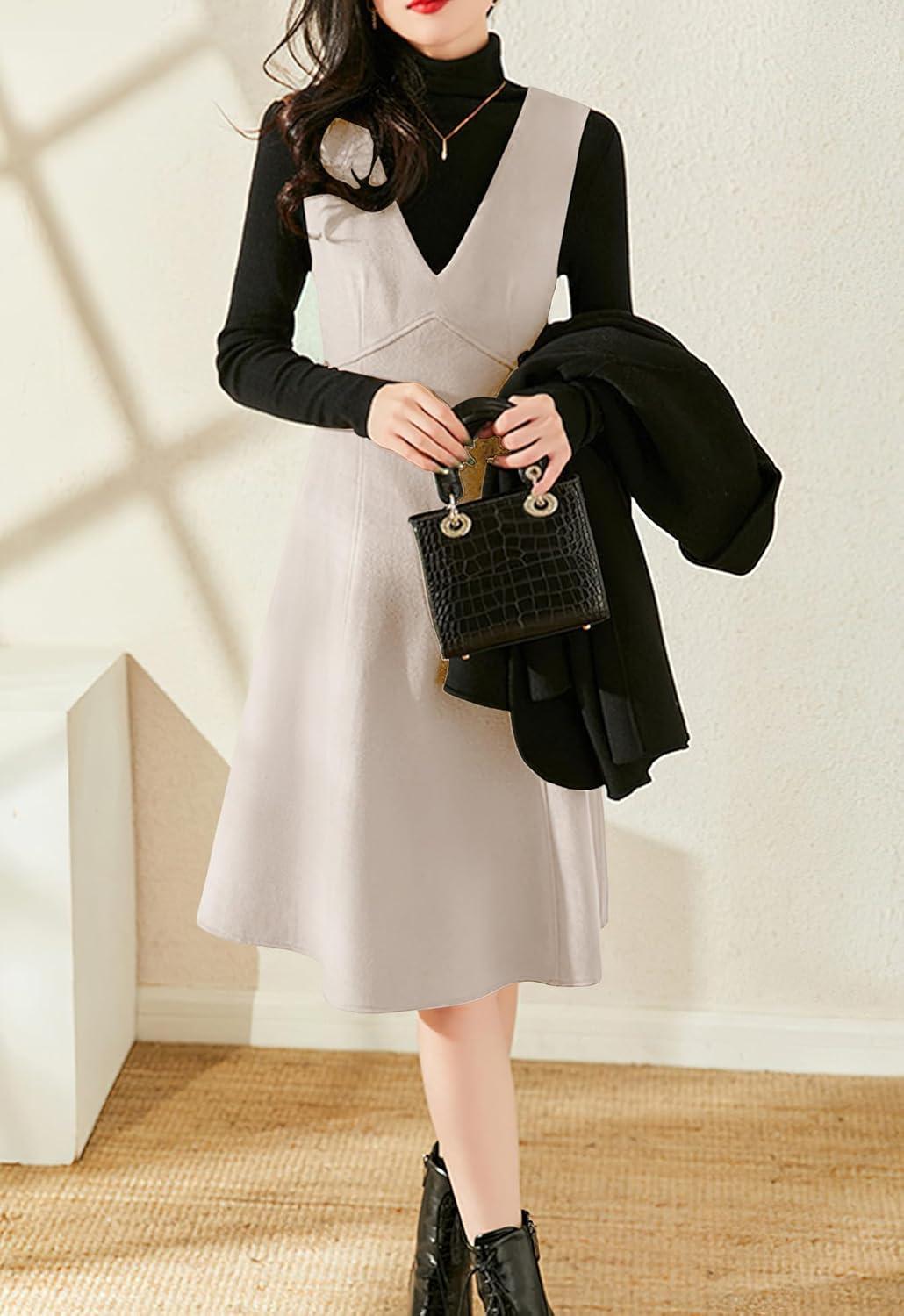 Be the first to review “chouyatou Women’s Fall Winter Wool Tank Dress Overall A Line Flare Pinafore Zip Up Dressy Midi Jumper Dress(Apricot)” Cancel reply