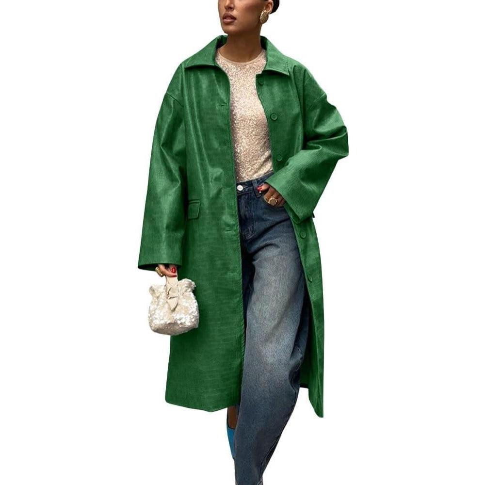 chouyatou Women's Faux Leather Long Trench Coat Casual Lapel Single Breasted Pu Leather Jacket Outerwear Overcoat(Green)