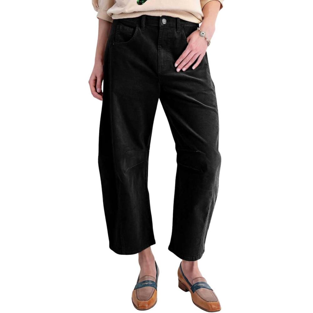 chouyatou Women’s High Waisted Baggy Crop Corduroy Pants 2025 Fall Casual Barrel Harem Pants Trousers(Black)