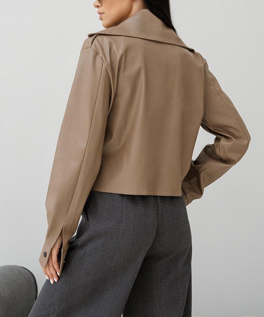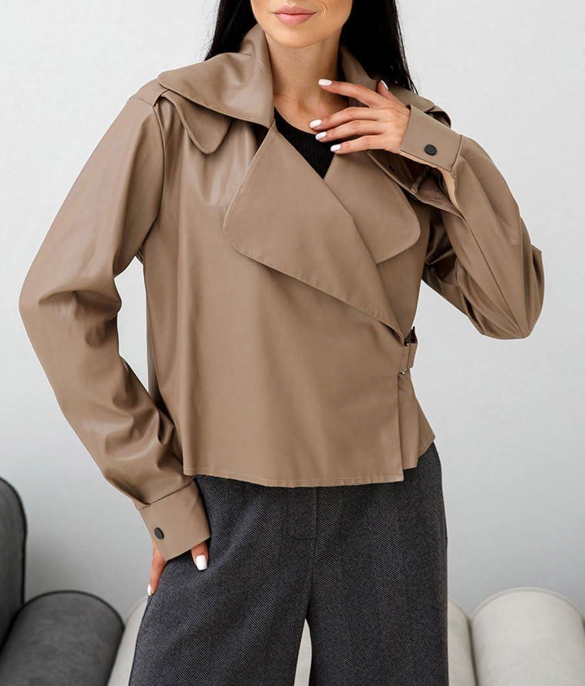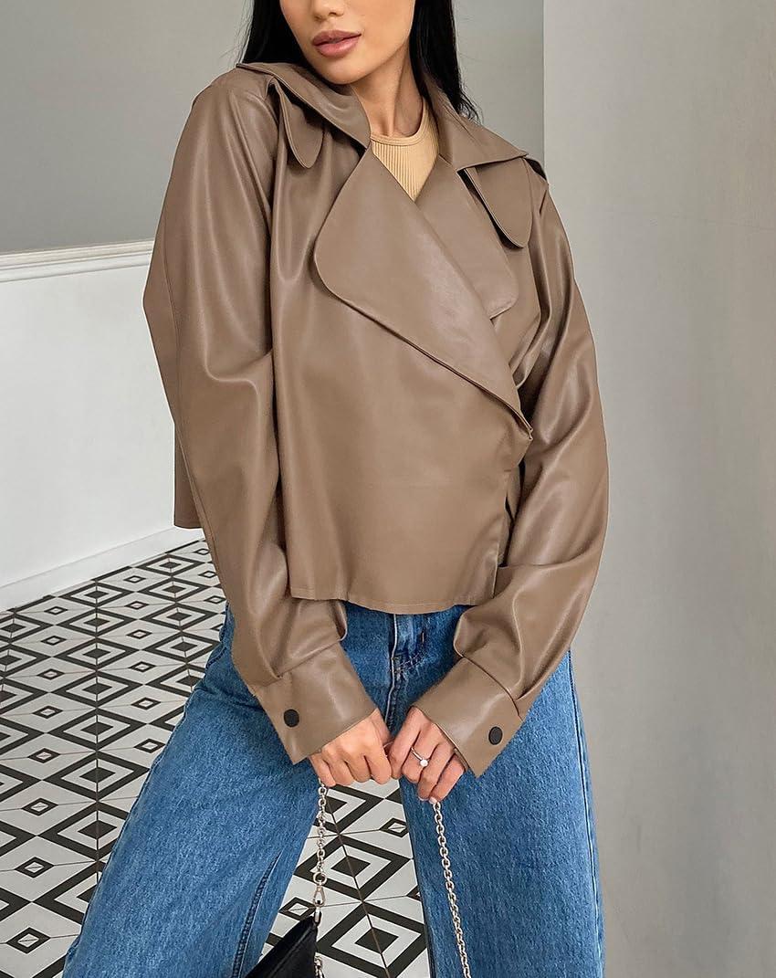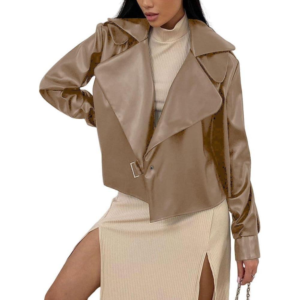 Get the chouyatou Women’s Notched Lapel Pu Leather Jacket Boyfriend Motorcycle Faux Leather Jacket Outerwear Coat(Khaki) you’ve been eyeing at a discounted price during our seasonal sale event.