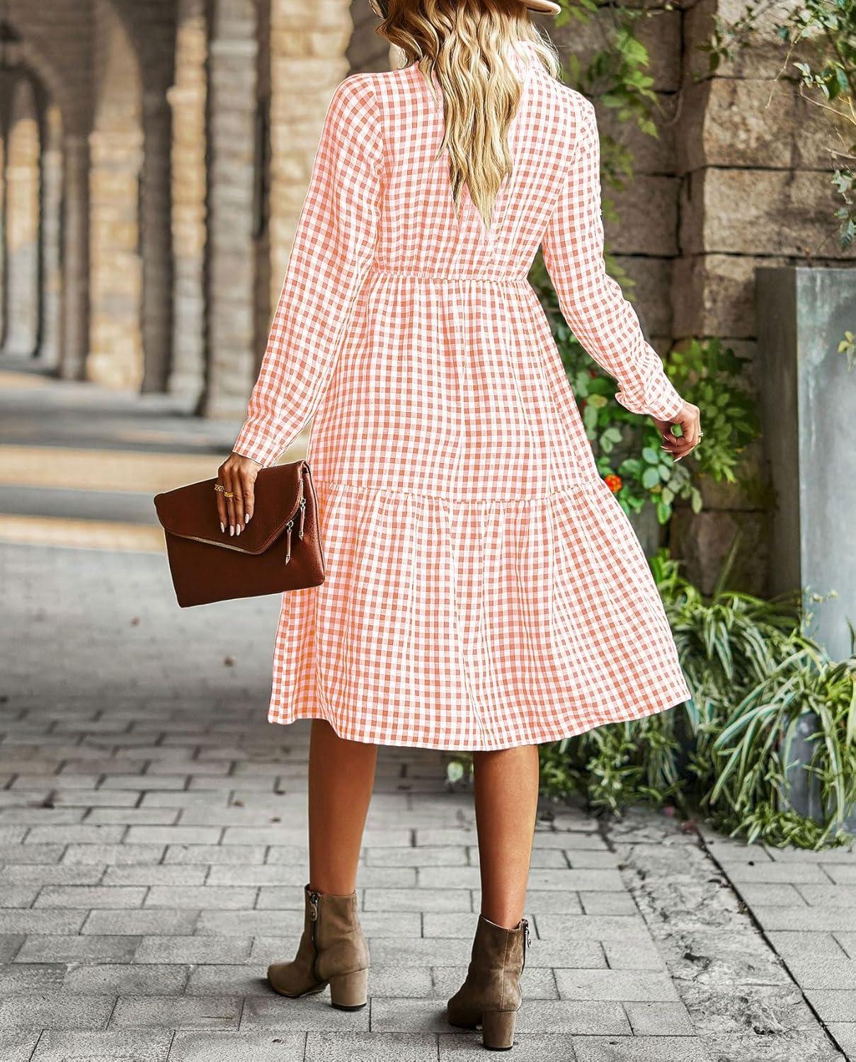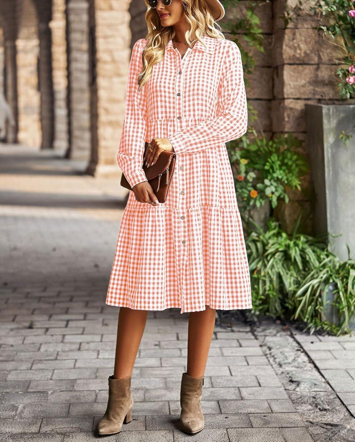 Be the first to review “chouyatou Women’s Retro Plaid Button Down Shirt Dress Long Sleeve Ruffle Tiered Midi Long Dress with Pockets(Orange)”